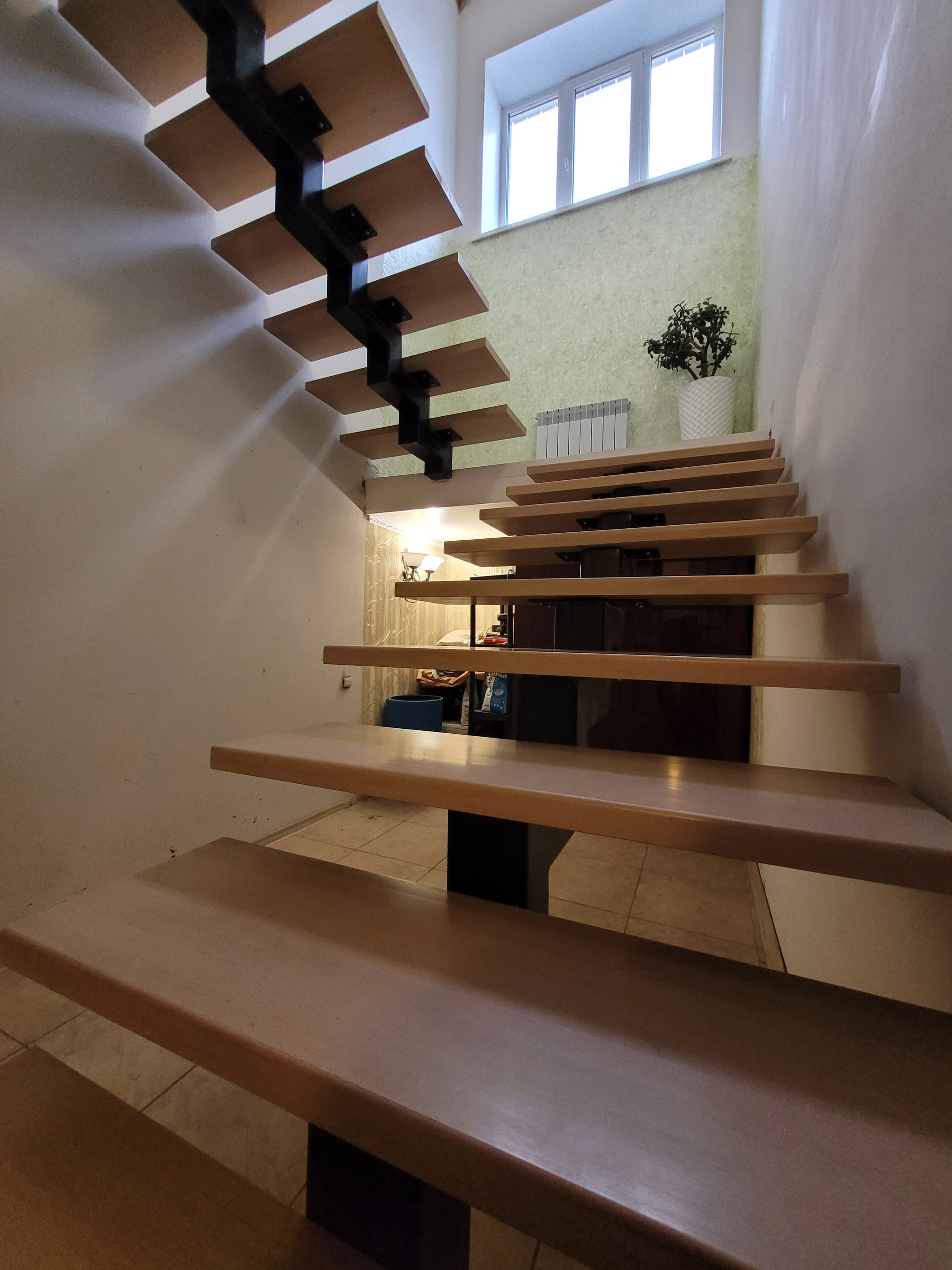 Лестница : труба 100мм + бук ступени- (ограждение кованное, либо на выбор,можно любое)