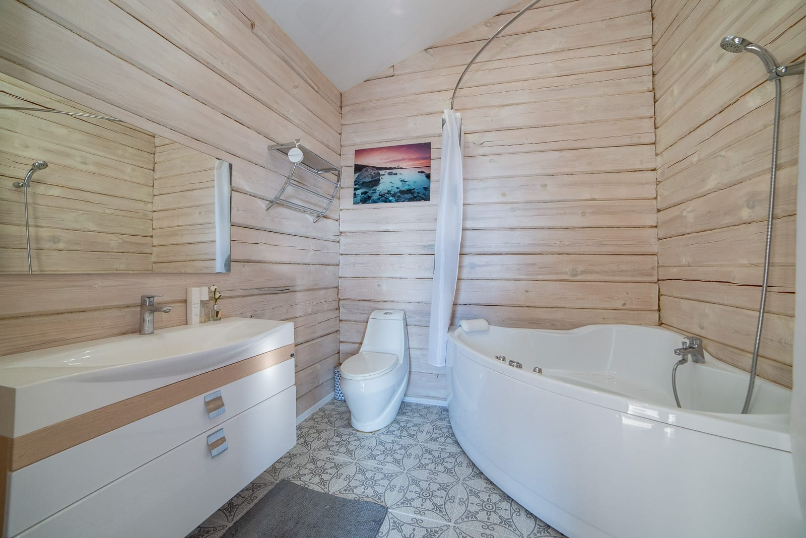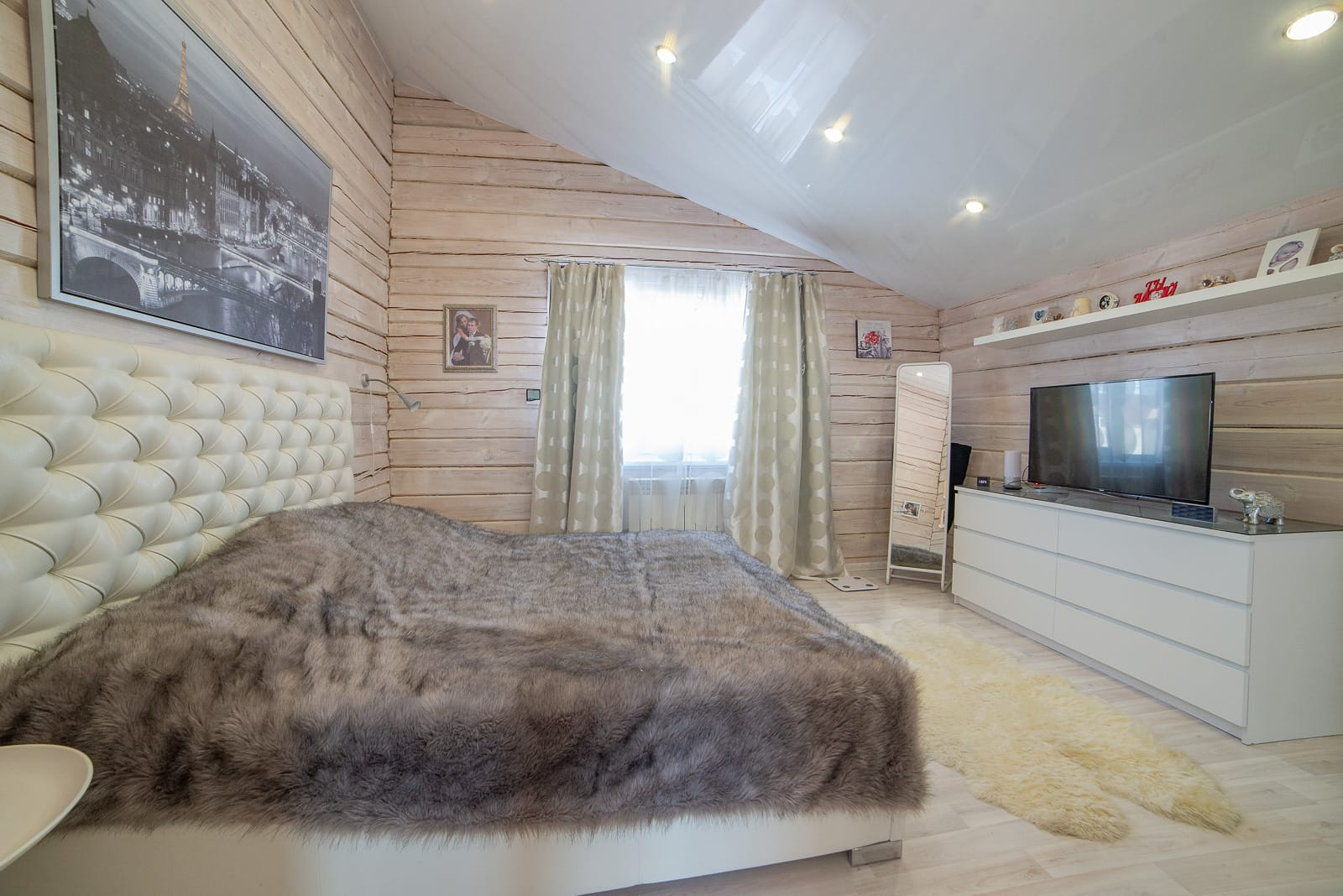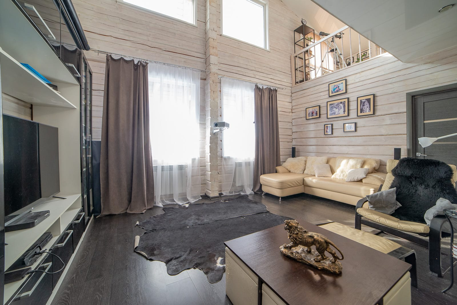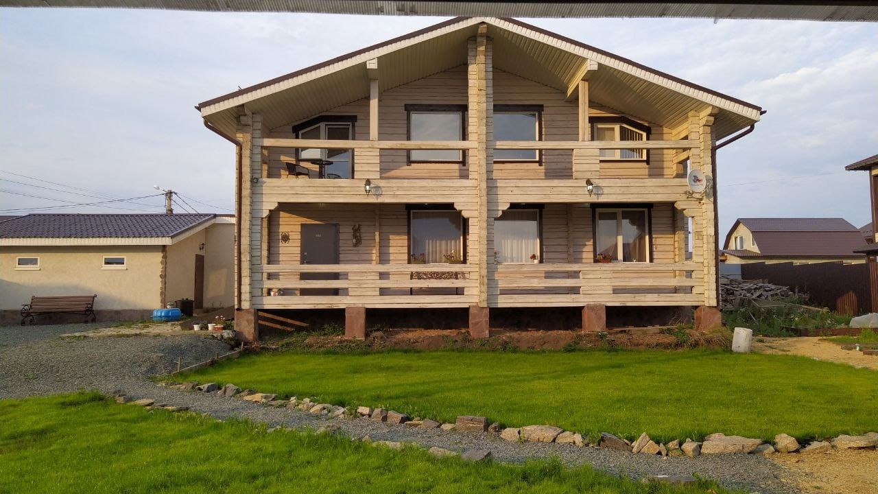 Гостиная со вторым светом, кухня-столовая, кабинет, тренажерная с сауной, 3 спальни, 2 санузла с джакузи, котельная. Также имеется терраса и балкон. Дом сооружён по авторскому проекту из бруса на участке 9 соток в КП «Мельница», участок облагорожен, имеется гараж на две машины, большая уютная беседка с мангалом, детский спортивный уголок и большой детский домик с песочницей и горкой, кованые элементы декора, скамейки и качели, хозяйственные постройки. Дом сооружён по технологии проектирования домов "Финского залива".