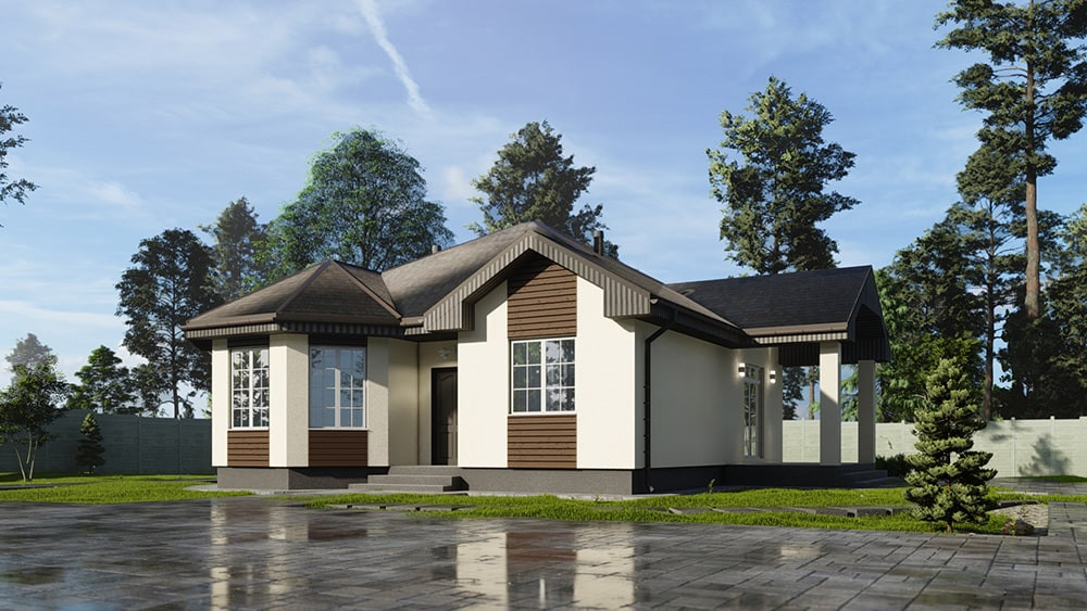 Дом по проекту SV-93 – это прекрасный вариант в европейском стиле для настоящих ценителей необычной геометрии помещений. В дизайне дома используются уникальные эркерные окна, которые ещё больше украшают дом и визуально расширяют пространство! Здесь просторная кухня-гостиная с выходом на крытую террасу, а также 3 спальни, одна из которых выполнена в необычной геометрии и с 3 большими эркерными окнами, в комнате всегда будет много света!