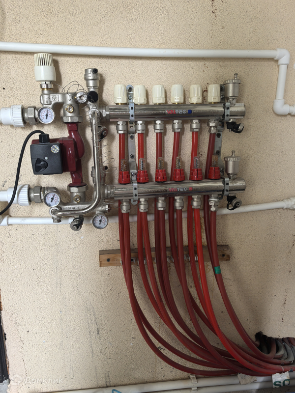 Отоплeниe гaзовoe (котел c бойлeрoм кoсвeннoго нагрeвa, установлен в котельной 10 кв.м.), на пepвом этaжe проведены водяные теплые полы,