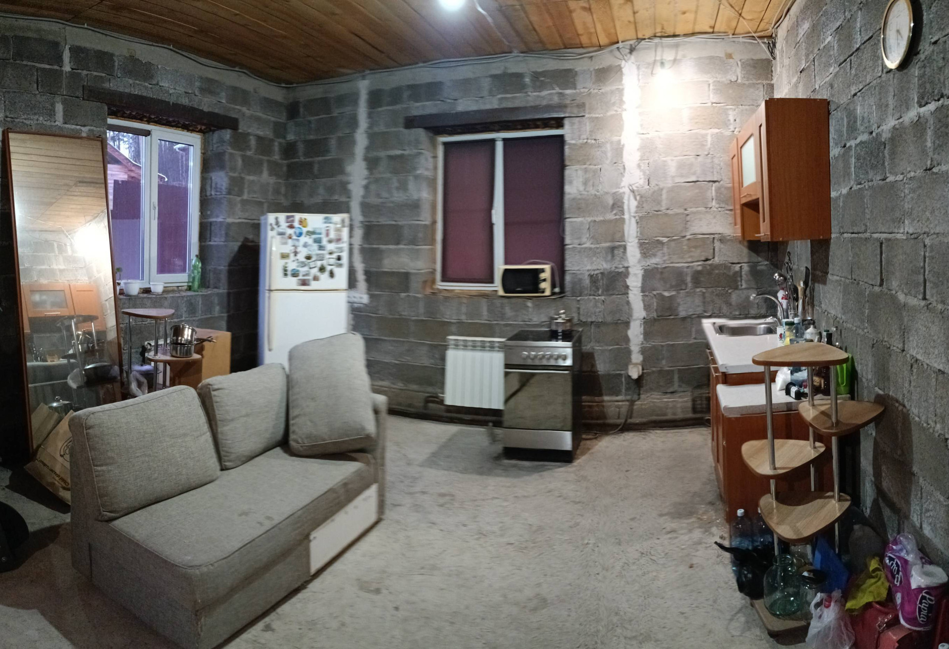 Дом построен в 2014 году. Расположен на 6 сотках в 3 км от границы г. Красноярск в СНТ "Связист". Строил для себя, не на продажу, поэтому знаю и могу рассказать всё о строительстве . На стройматериалах не экономили!!толщина стен 40 см. +8 см утеплитель "пеноплекс". Дом очень теплый. Материал стен бетоноблок усиленный, в полный блок. Для кладки использовался цемент марки 500, и армировка 1-й этаж каждые 4-ре ряда. 2-й каждые 2-ва ряда. Фундамент ленточный: толщина 80см, глубина 1.2 метра. Заливал бетононасосом + вибрация. На фундаменте оставлено место для облицовки дома отделочным кирпичом (по желанию можно и штукатурить). 1-й этаж высота потолка 3.15 м., 2-й высота потолка 2.80 м. Крыша утеплена 20 см. Выведена вентиляция. Лестница из лиственницы. Электропроводка - медь. Две линии электроэнергии СНТ + МРСК = 3 фазы. Можно переключать свет с одной линии на другую. Дорога асфальт (новый), удачное месторасположение. Дорогу обслуживаниет КРУДОР. Нет зависимости от СНТ!!! Скважина в котельной, 20 метров- вода в достатке, возил воду на анализ, всё отлично! Котел buderus 20 килловат. Бойлер для горячей воды 150 л. В гараже +17 в любой мороз. Электро ворота "дорхан" в гараже. Септик 7 кубов.