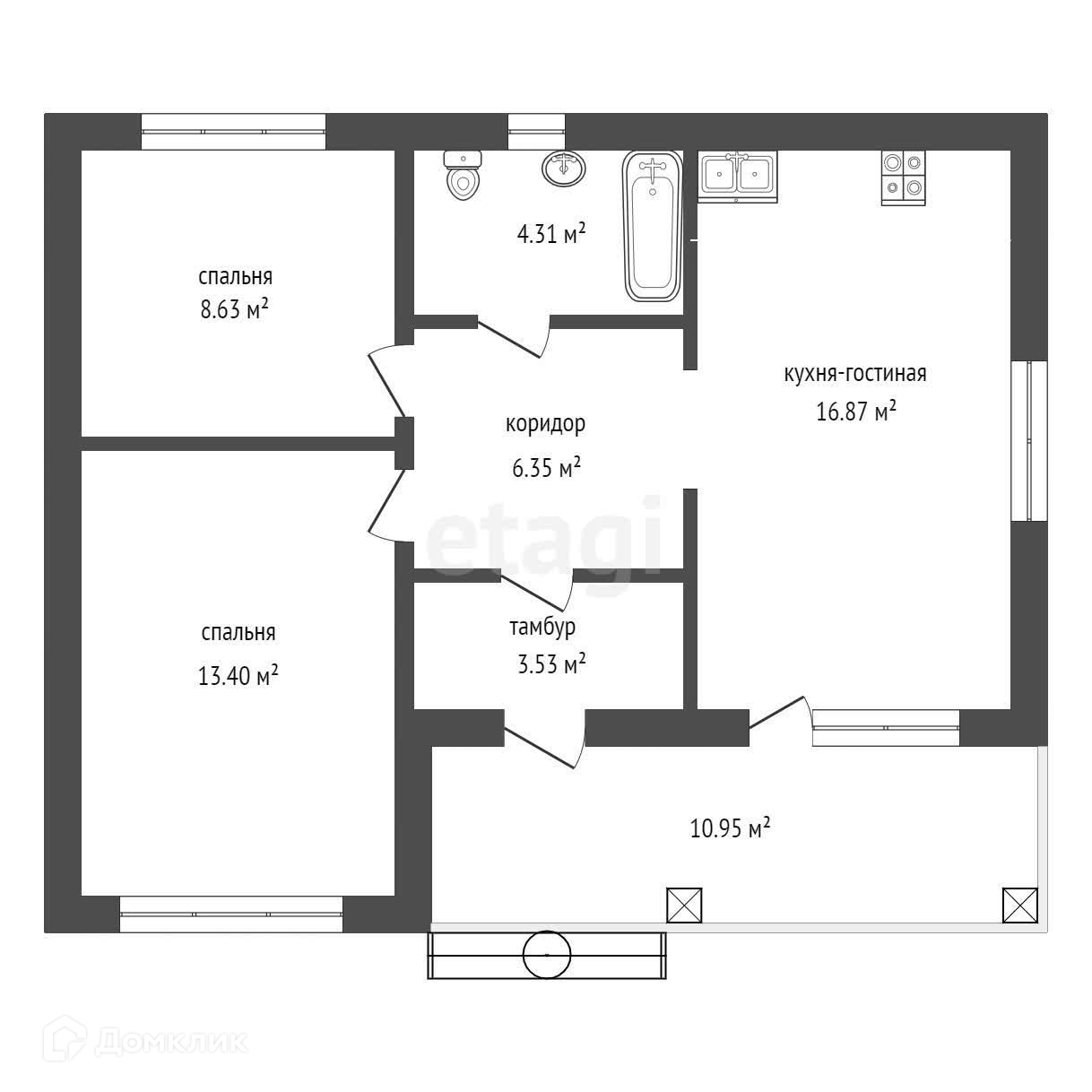 Общая площадь 72.4 м2
