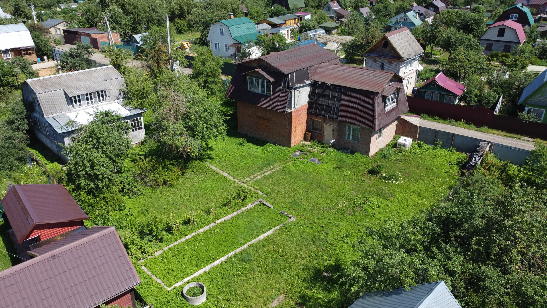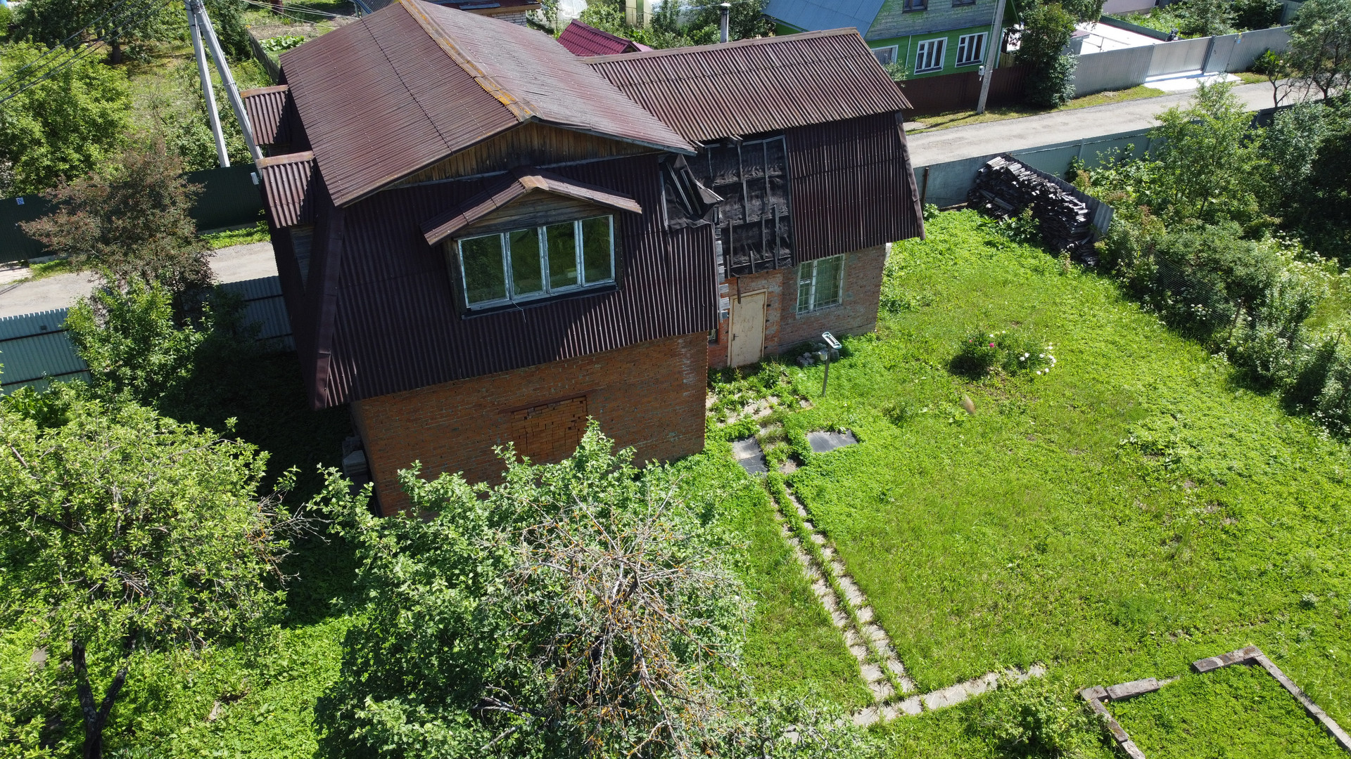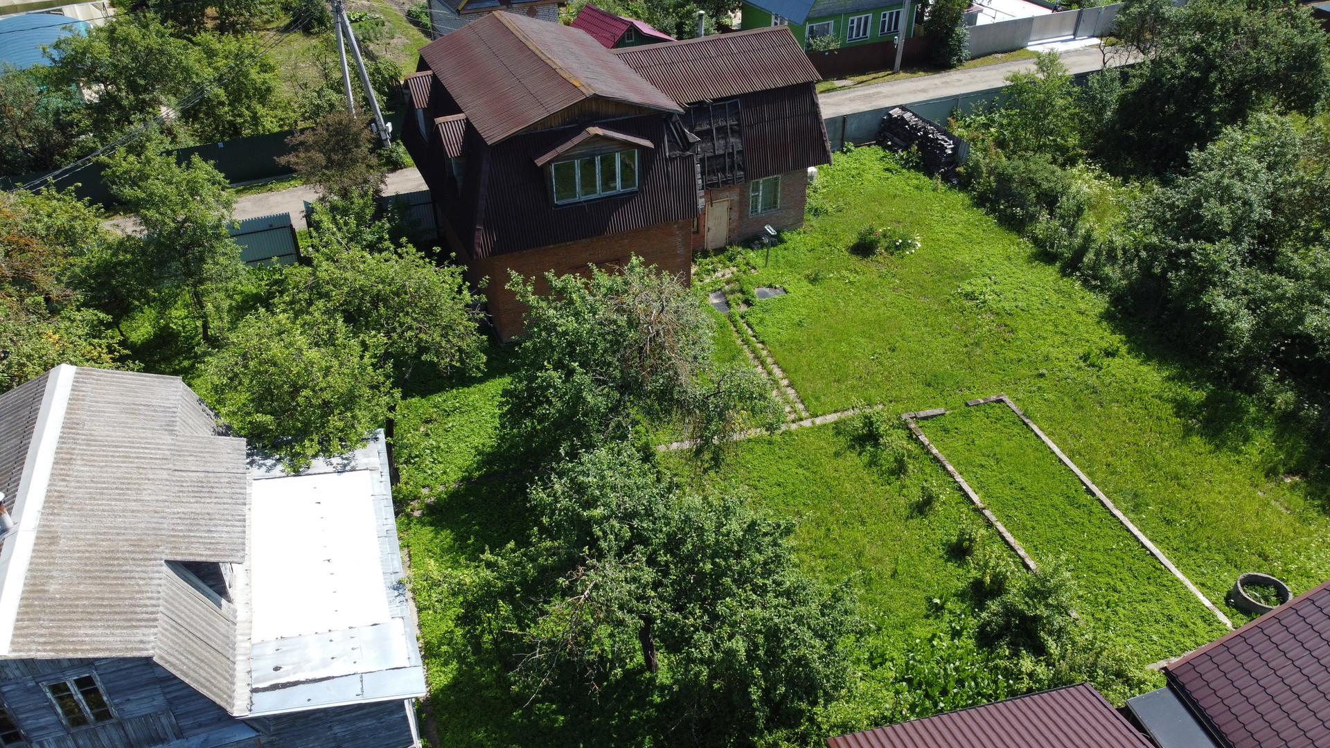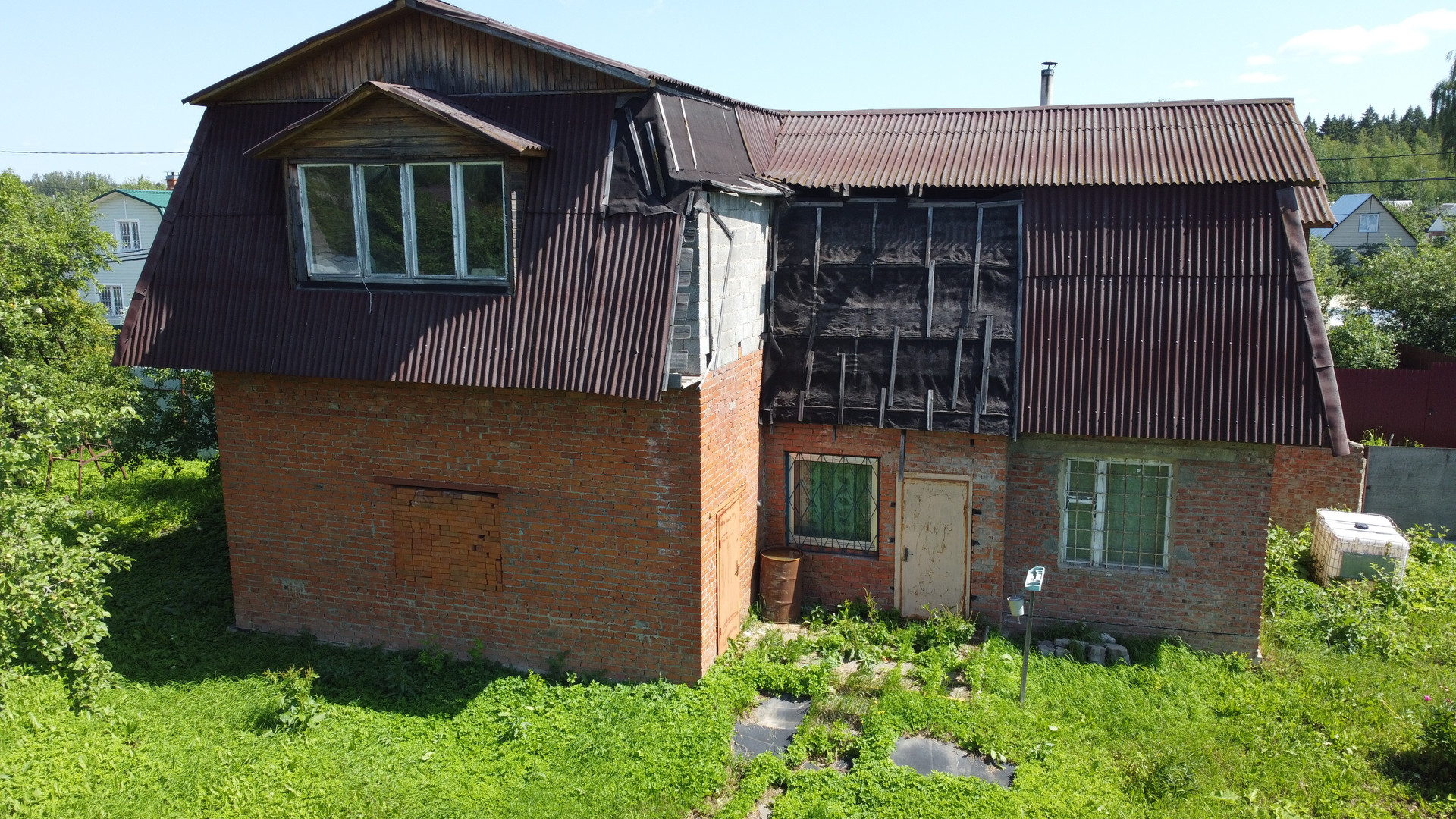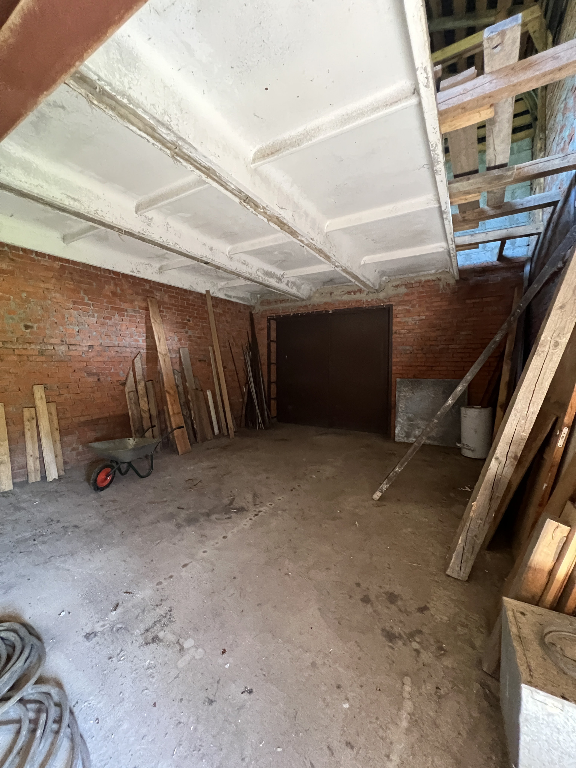 На участке так же расположено кирпичное строение, площадью 73,2 кв.м, двух этажное, между этажами железобетонные плиты перекрытия. Простроен из качественного крепкого кирпича, толщина стен 2,5 кирпича. На первом этаже расположен гараж на два автомобиля, небольшая прихожая, баня и комната для отдыха, все требует небольших вложений. Второй этаж свободной планировки, без отделки.