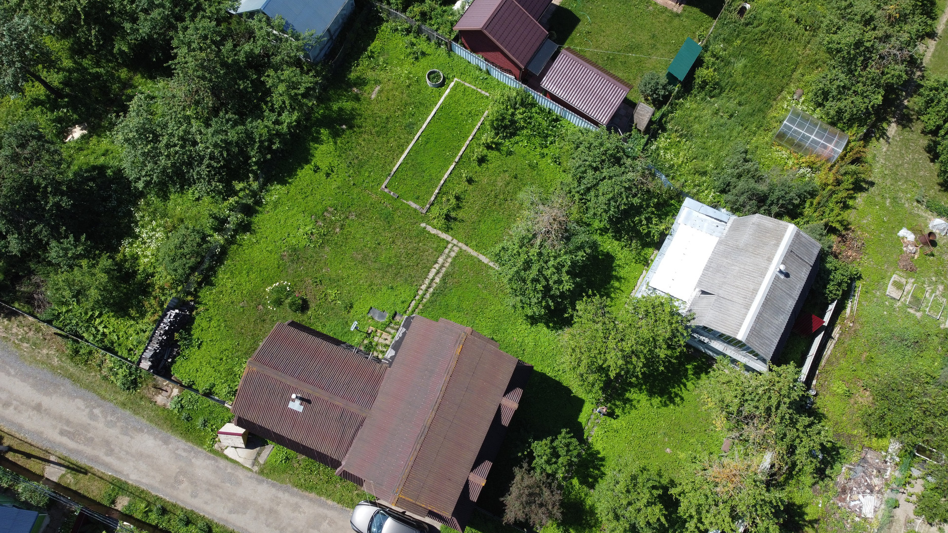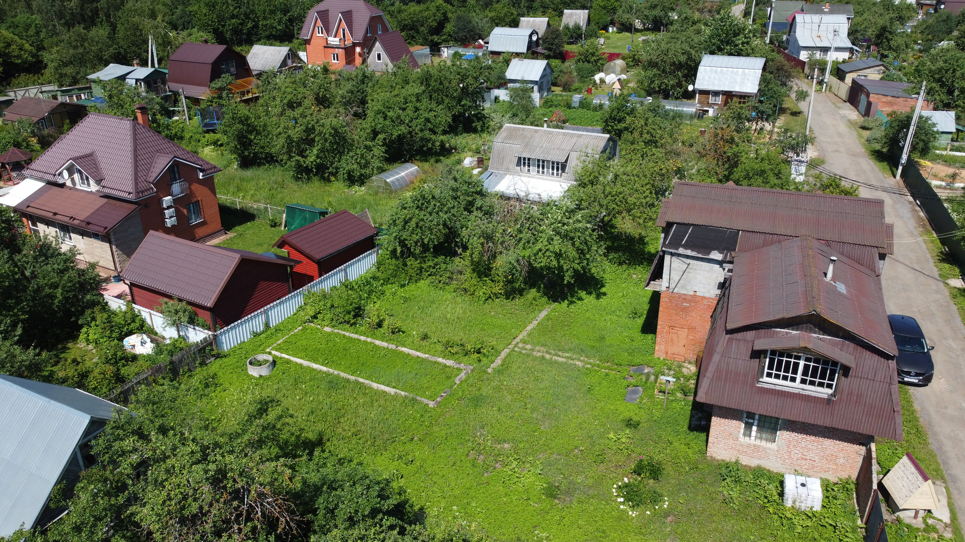 Участок ровный, имеет правильную форму, площадью 8,8 сотки, снаружи огорожен профлистом, сзади – сетка рабица, въездные ворота и калитка. Участок ухожен, плодовые деревья.