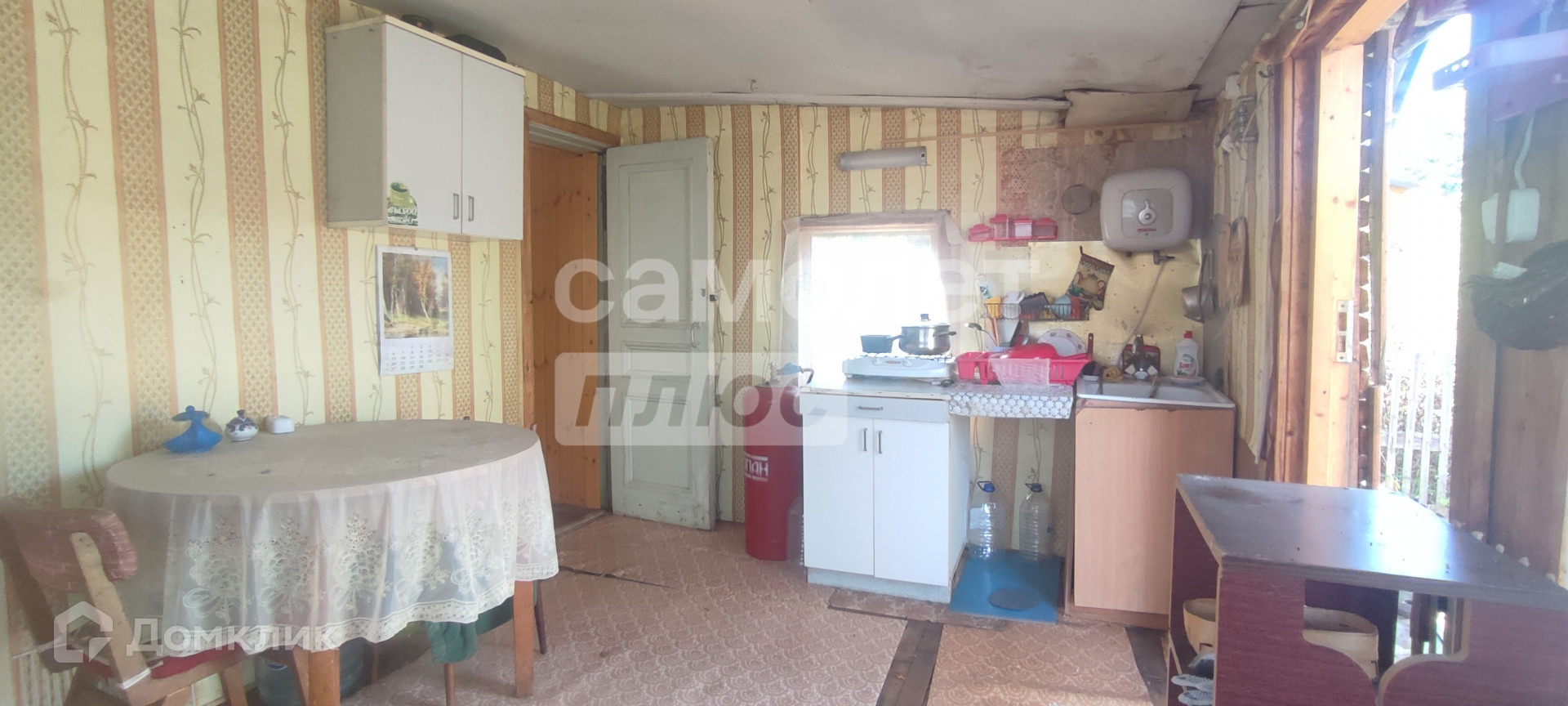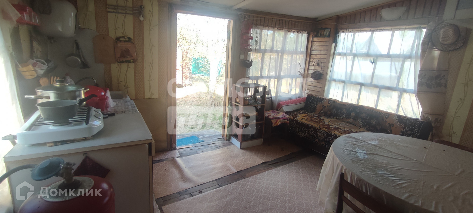 Дом щитовой (1993г), с хозпристройкой, фундамент составной из блоков. В доме объединенная прихожая с кухней (12 м2), плитка газовая (баллон газовый), зона столовой, зона отдыха, комната (18 м2), полы в комнате паркетные, в прихожей линолеум, есть чердачное помещение. Летний водопровод в дом заведен.