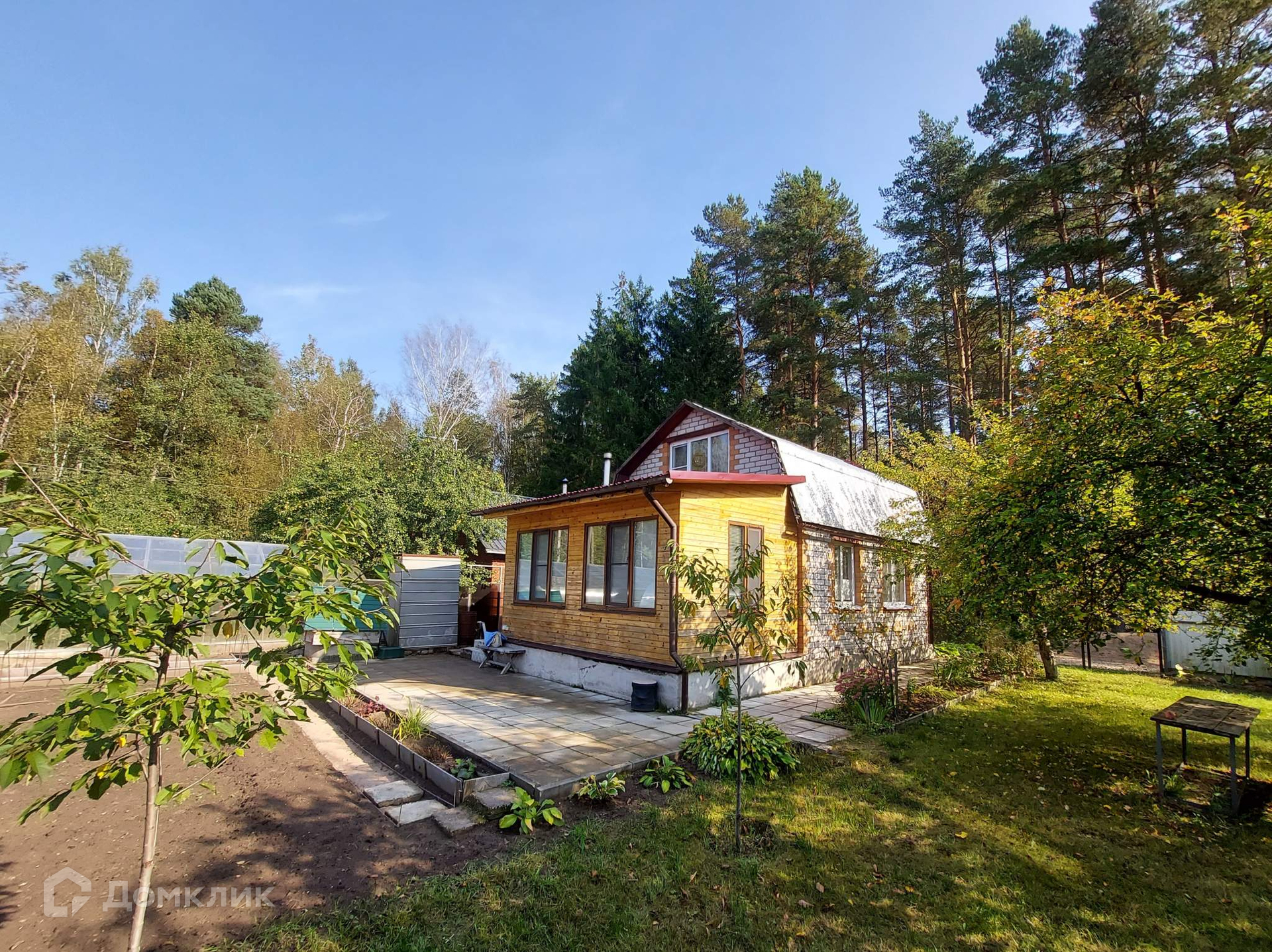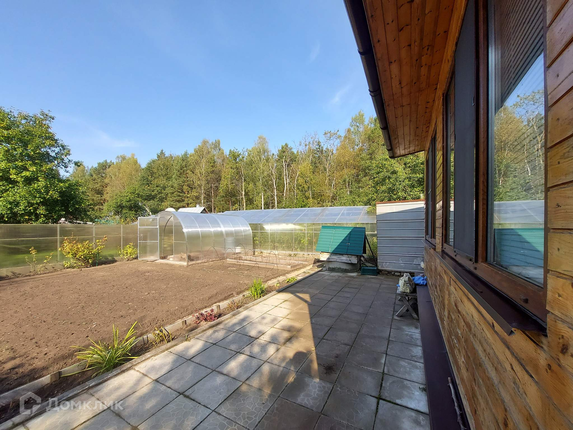 Участок с правильным рельефом. На сухом участке  расположены двухэтажный кирпичный дом с верандой, баня, дровяник, туалет, теплица.