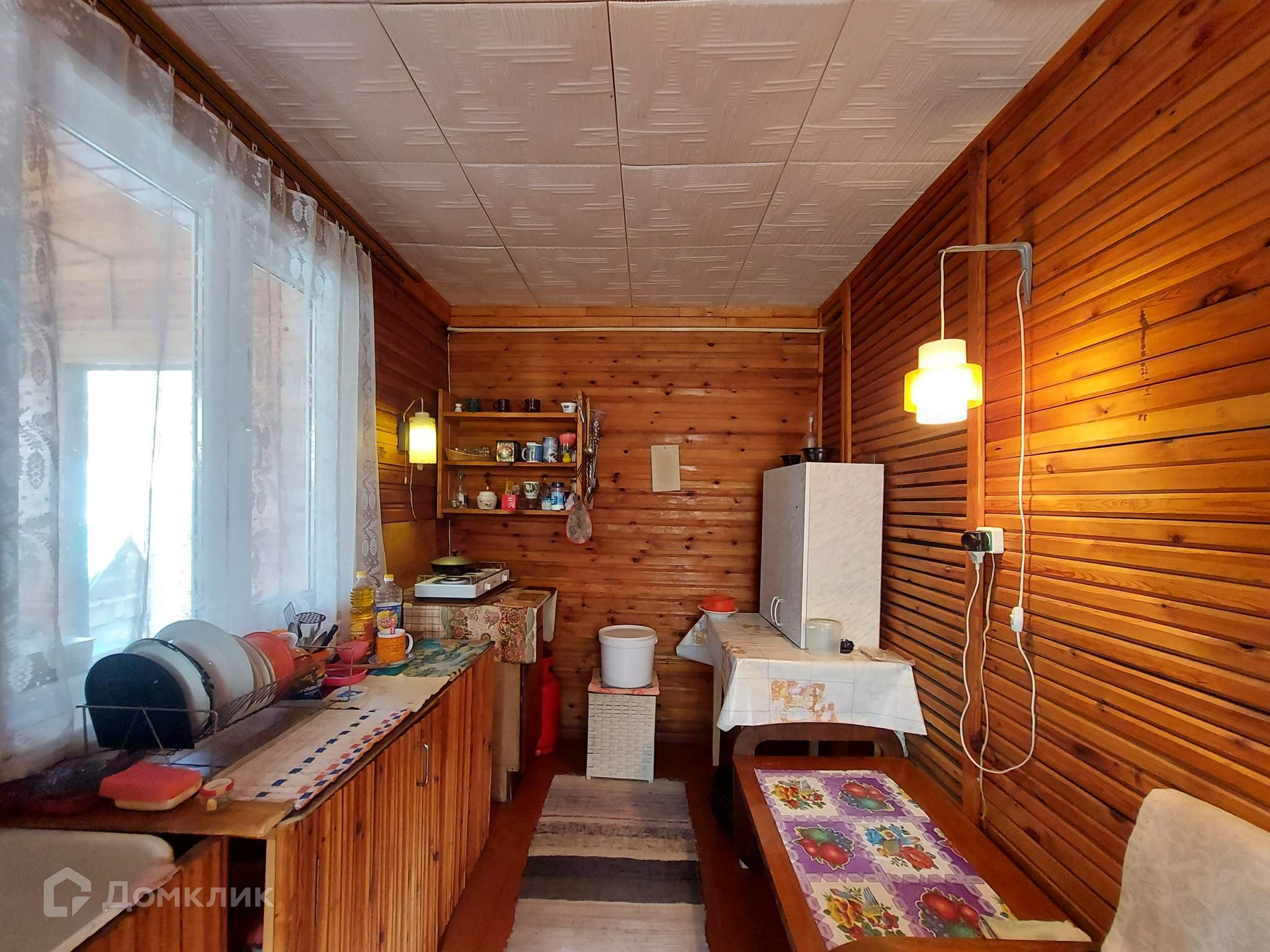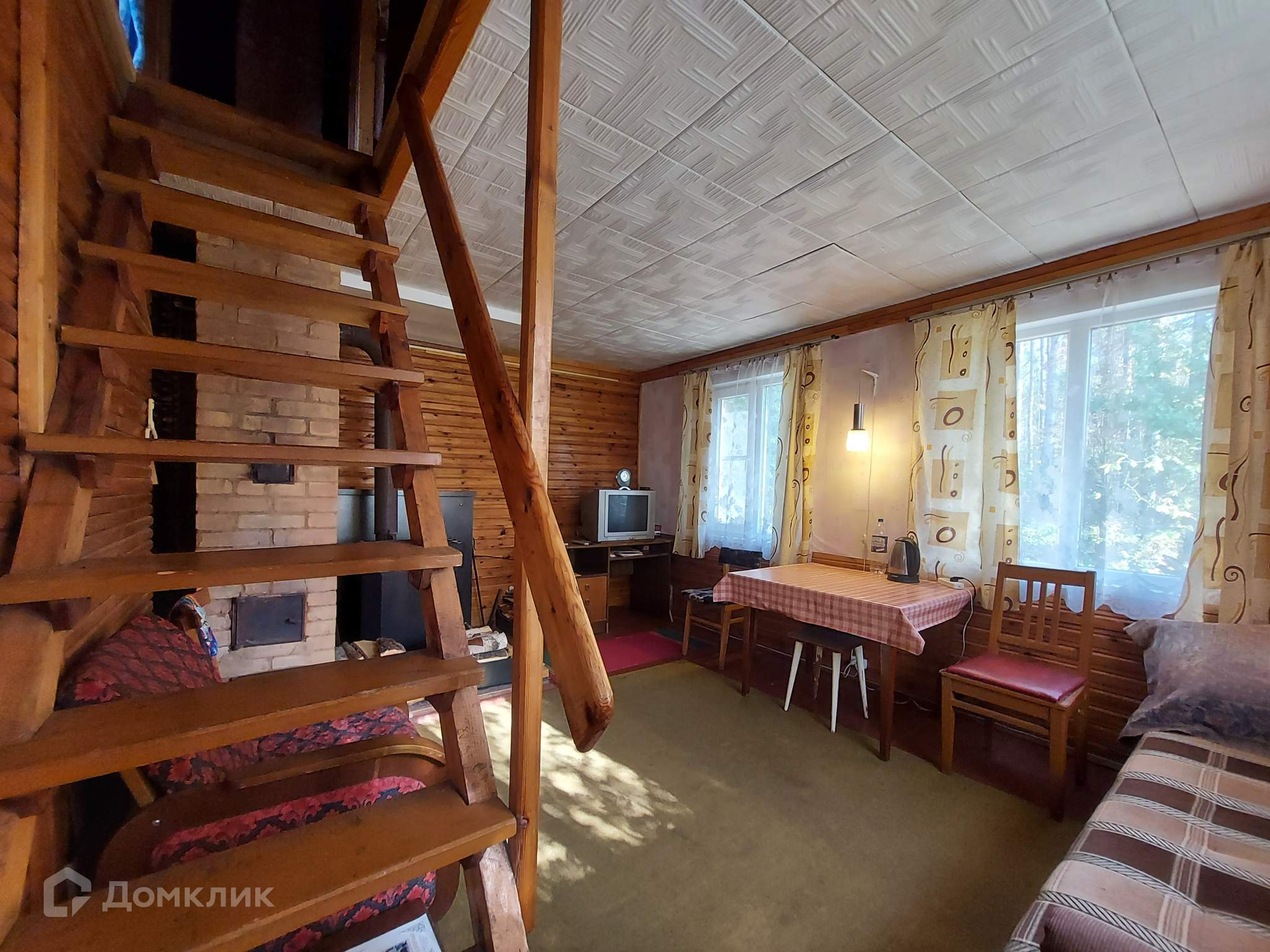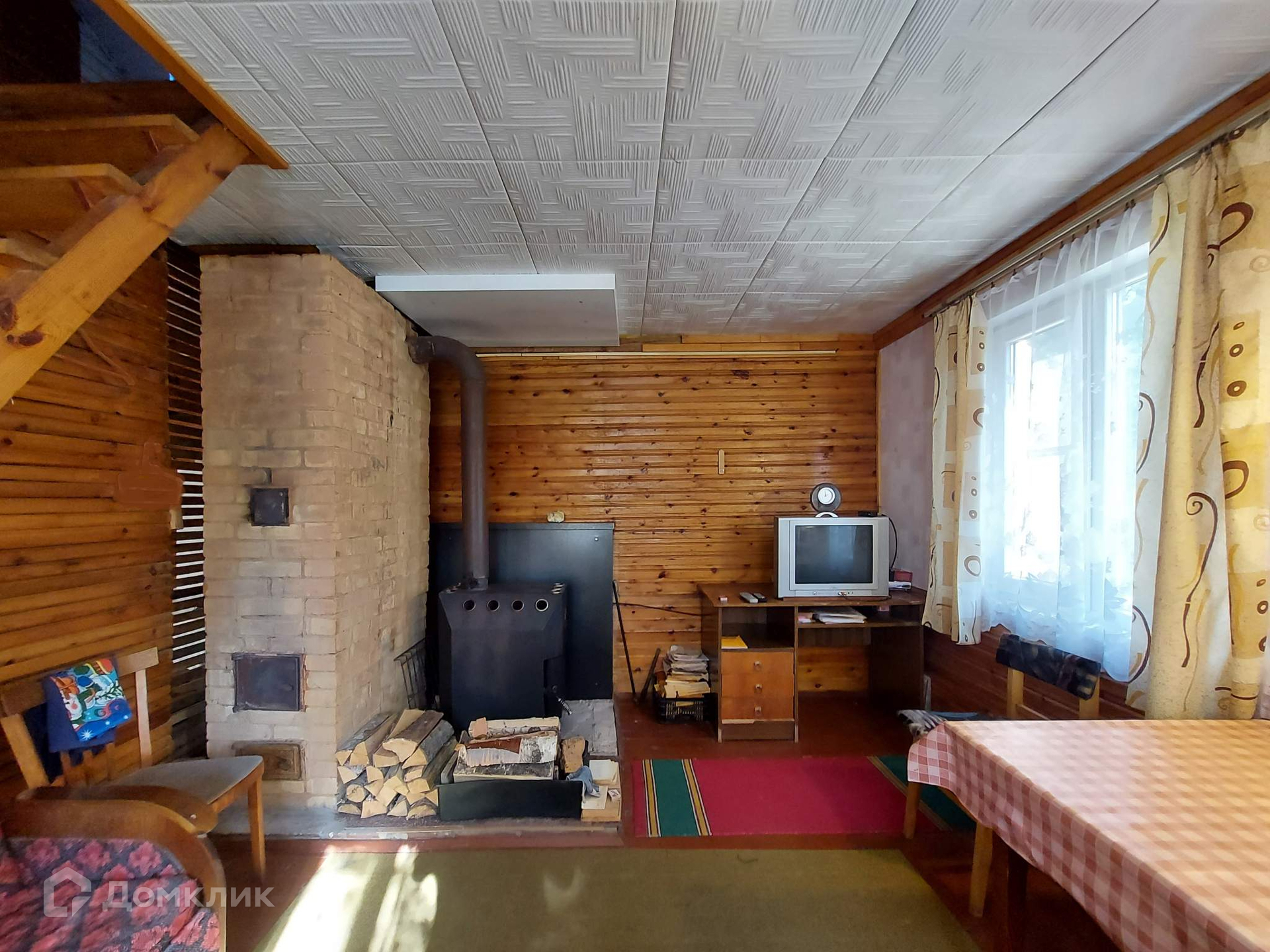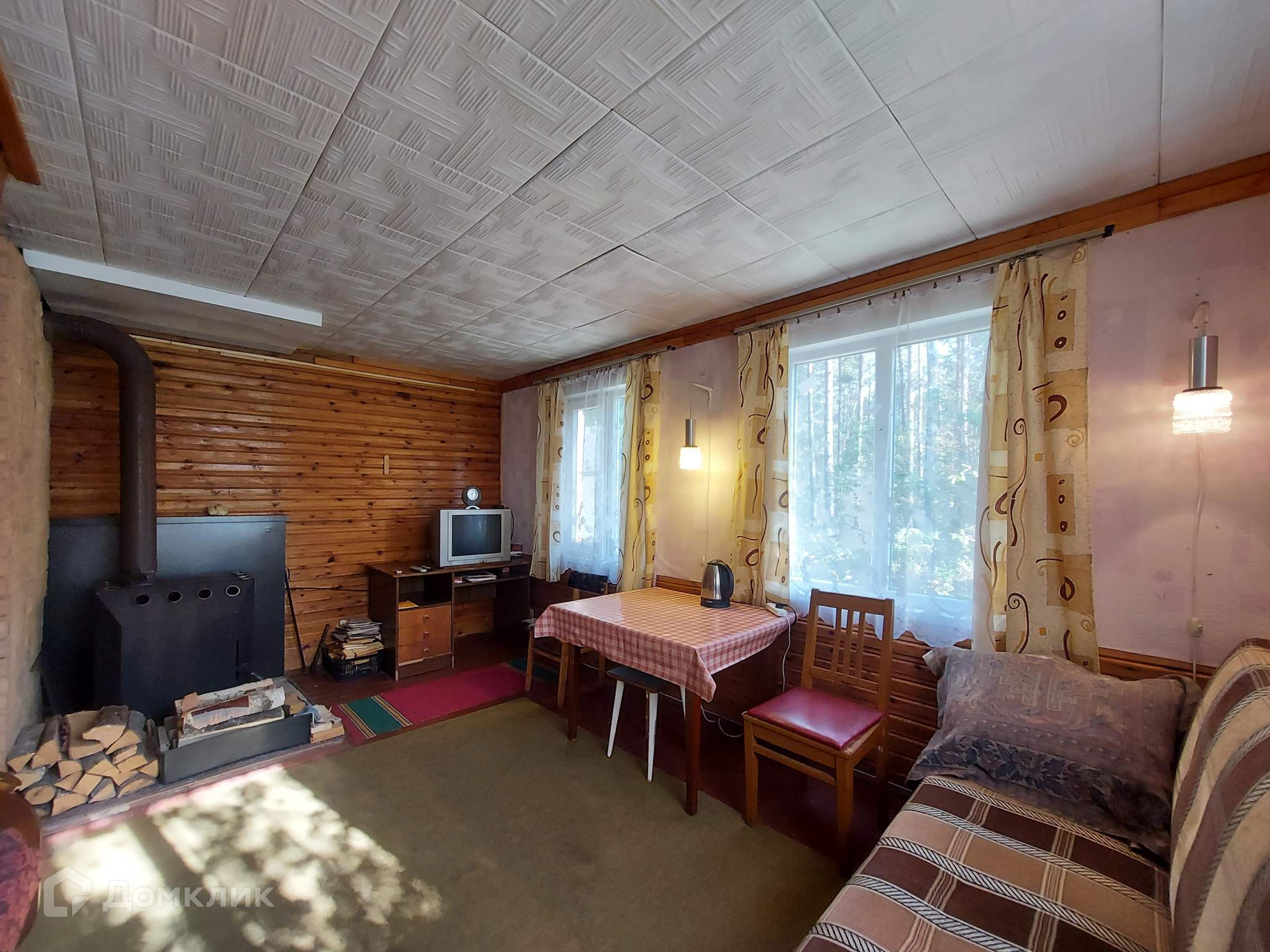 Дом в хорошем состоянии,  пригоден для постоянного проживания.  Печное отопление. Одна печь русская, другая конвекционная. Просторная светлая веранда, кухня, газовая плита (газ привозной), две жилые  комнаты на втором этаже, одна большая комната на первом этаже, везде установлены стеклопакеты включая веранду.