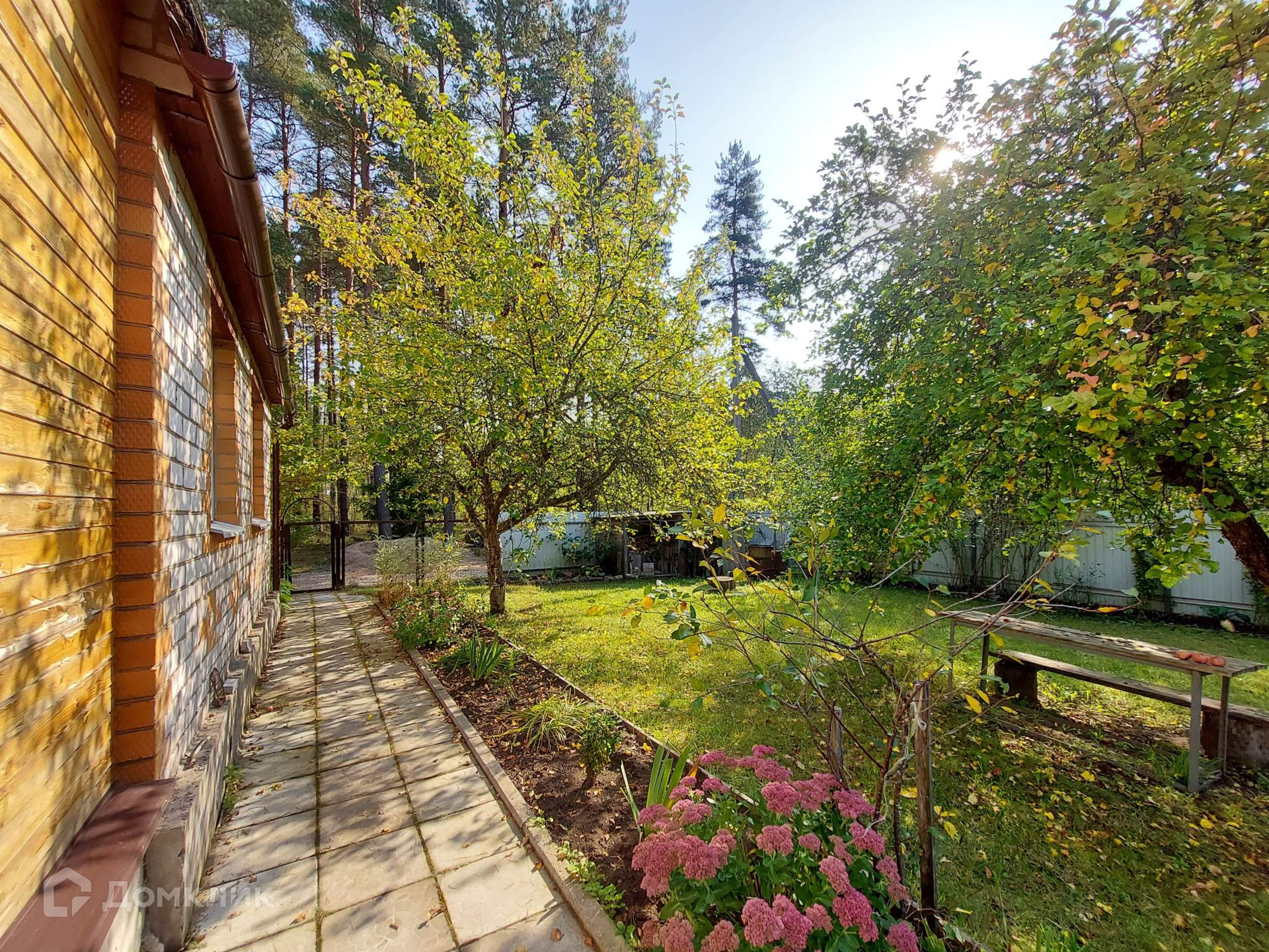 На участке растут плодовые деревья, кусты смороды, всевозможные цветы.  Участок полностью огорожен и ухожен, все плодоносит.