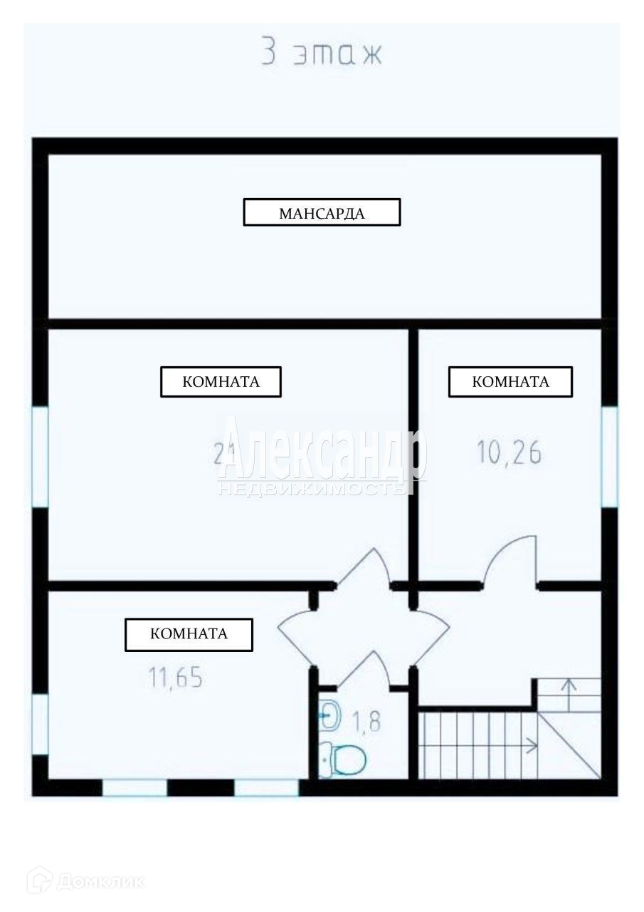 3 этаж-стены из бруса, три комнаты (10+12+21 кв.м), мансарда, санузел.