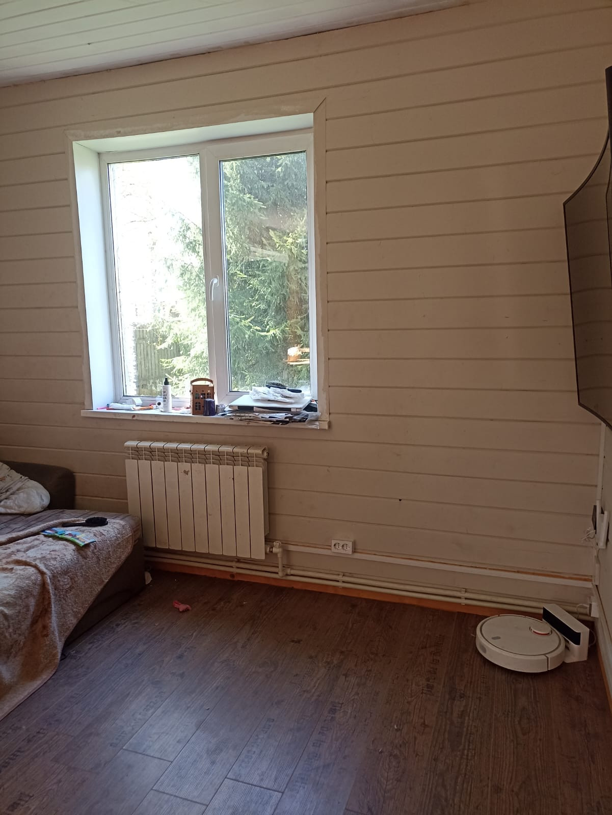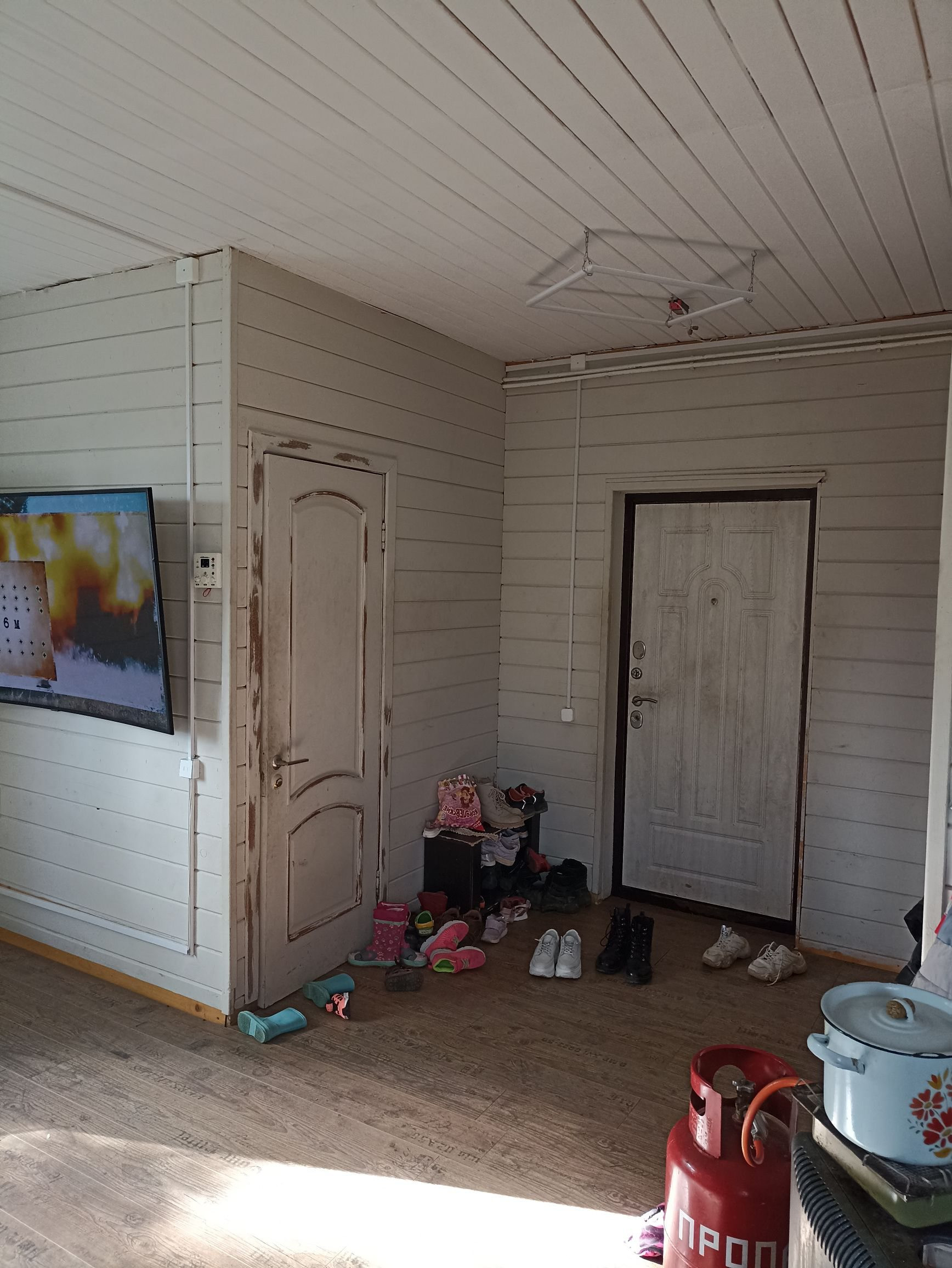 Дом отапливаемый. Дизельный котёл с разводкой в батареи по дому.