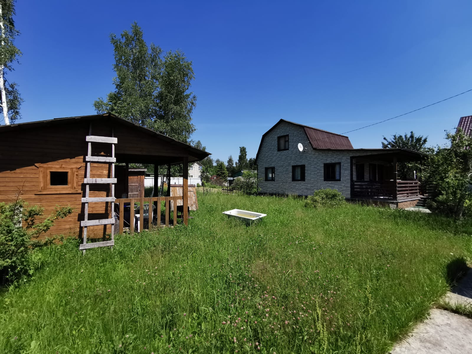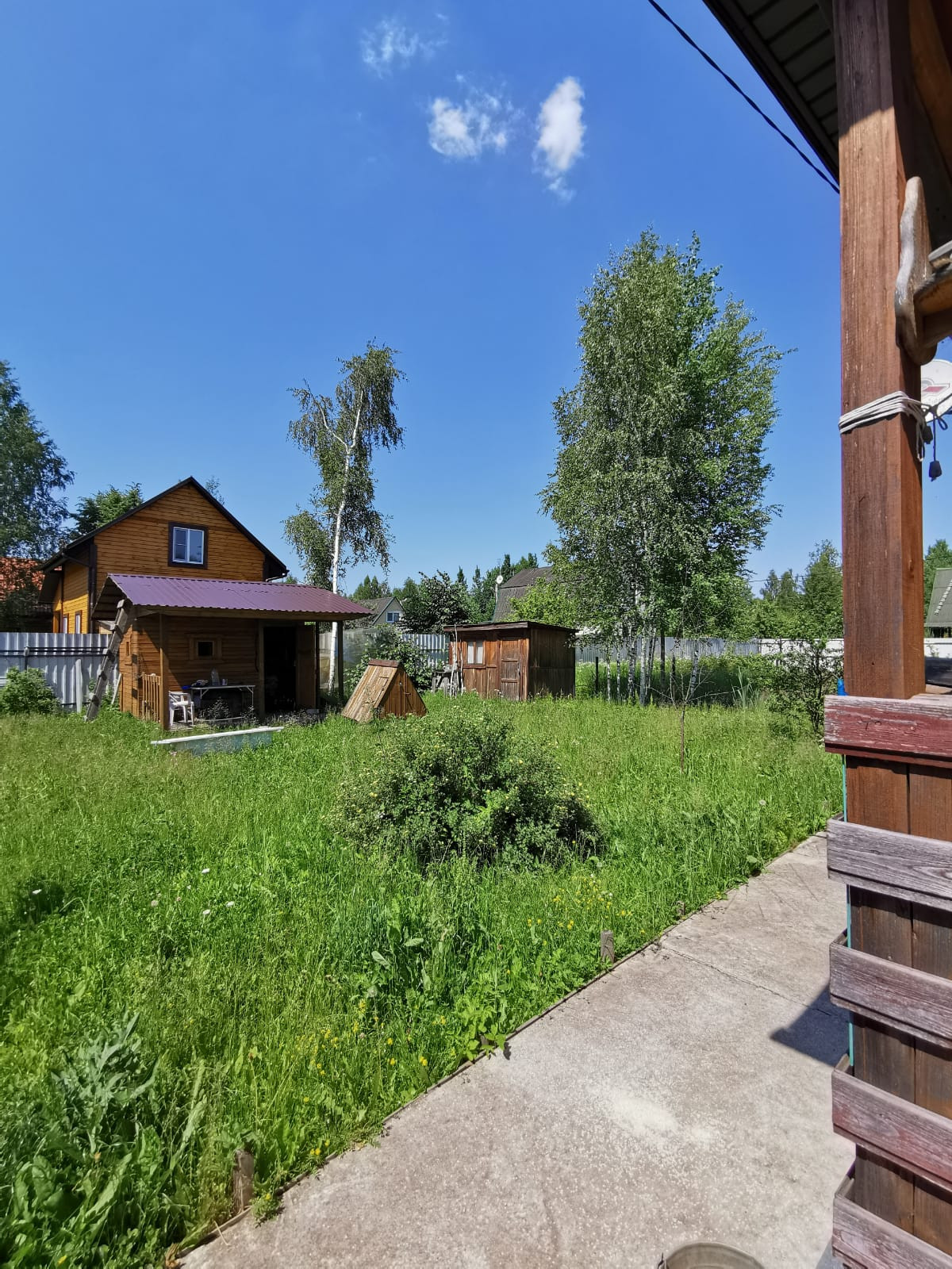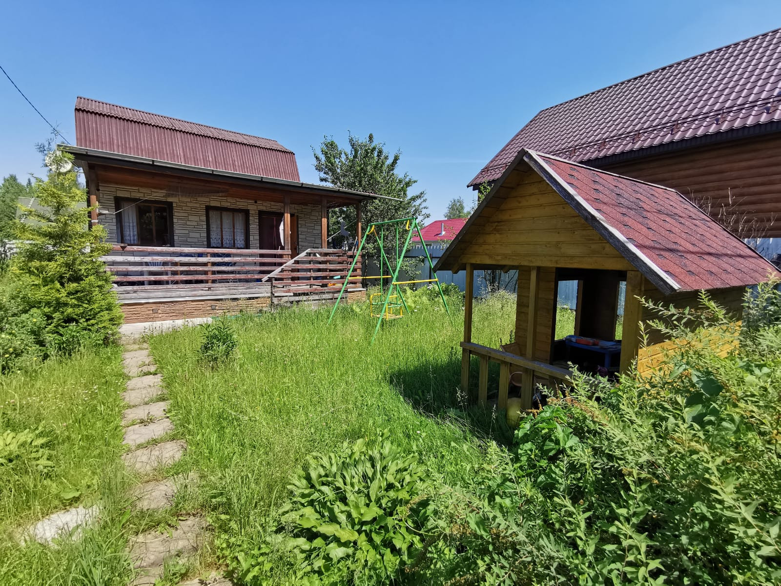 На участке уже есть все необходимое для приятного времяпровождения: два вместительных хозблока для хранения инструментов и инвентаря, садовая и детская качели для отдыха и развлечений, а также милый домик для детей, где они смогут играть и веселиться!