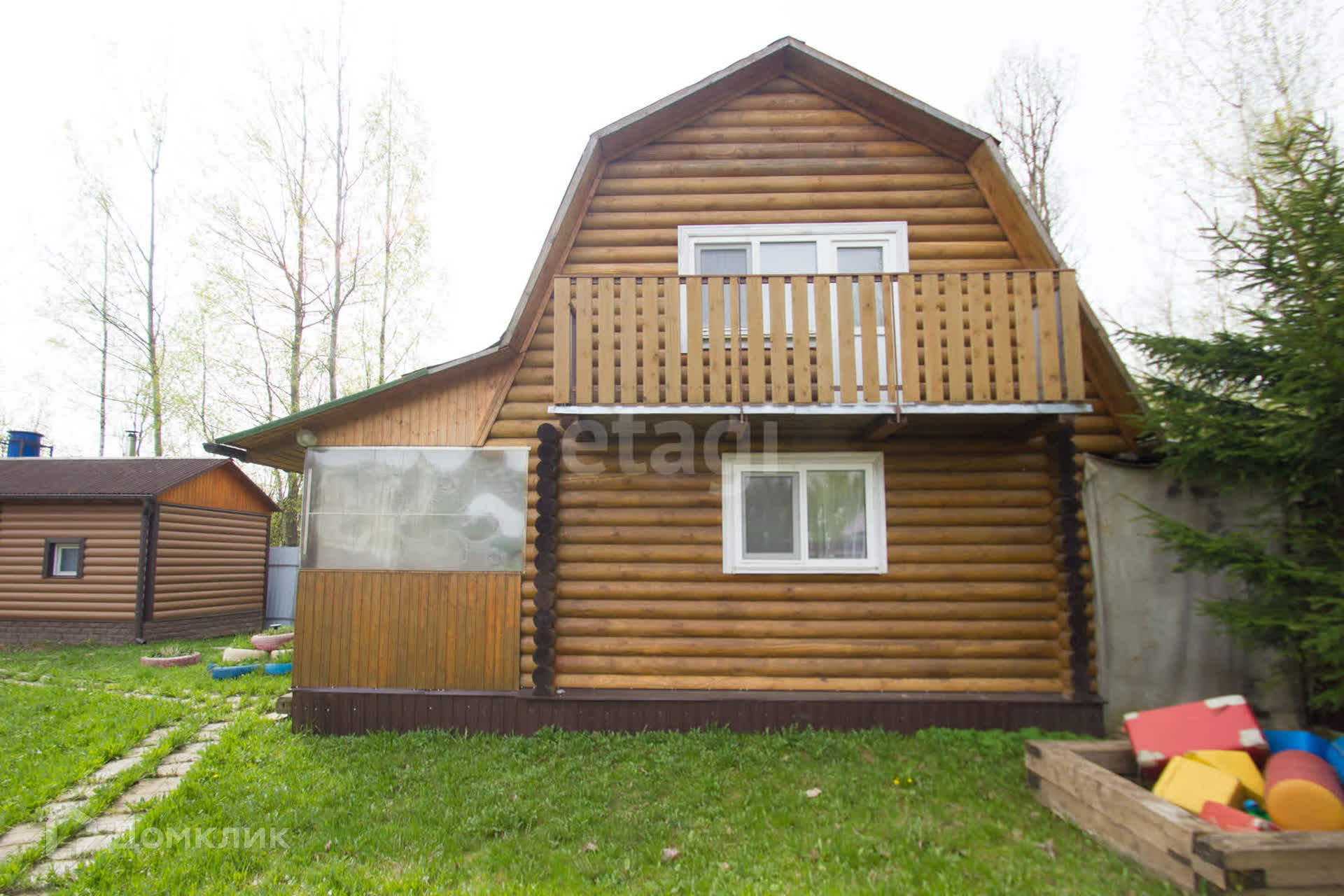 На втором этаже есть открытый балкон.