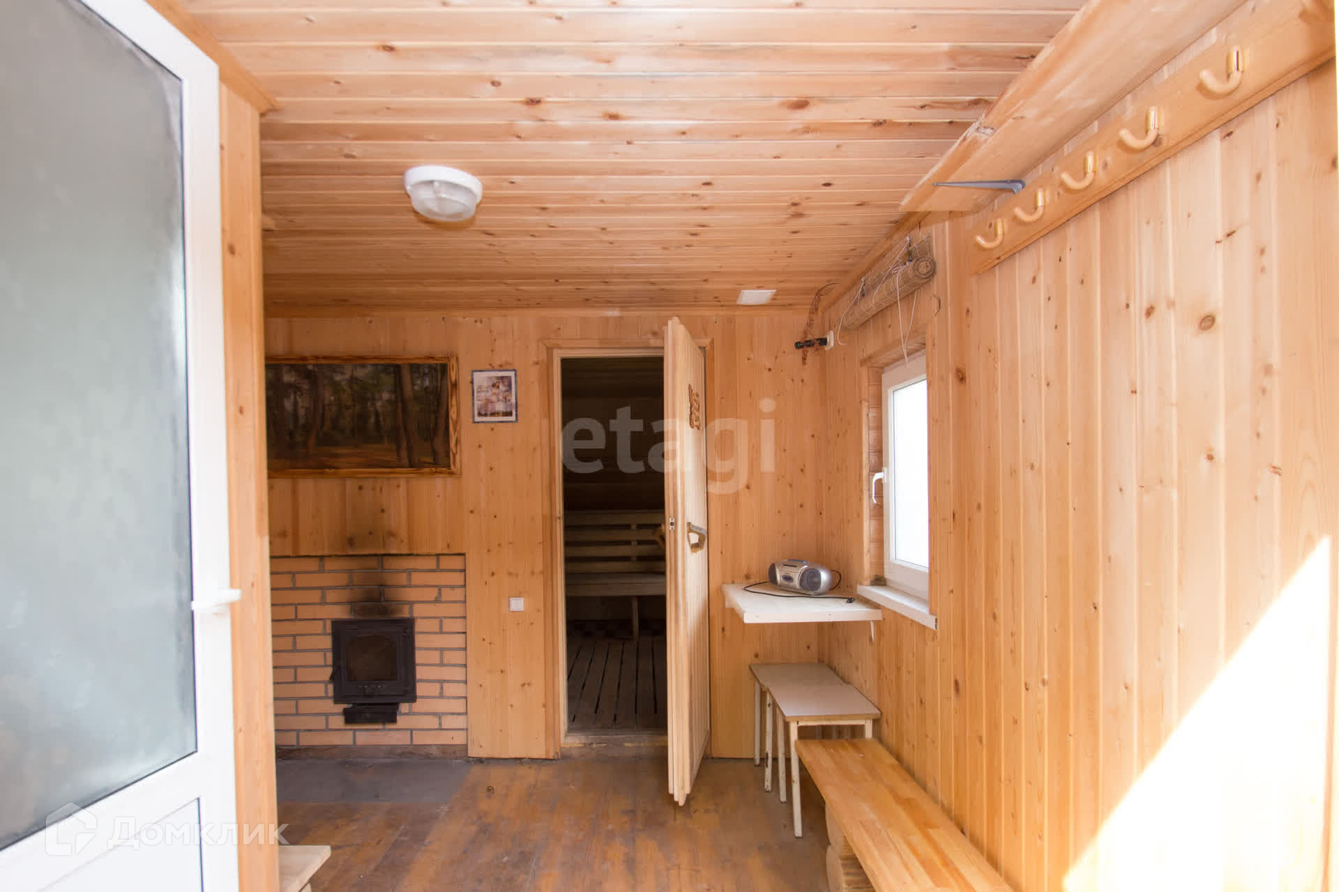 - баня 6*3 - каркасная, облицована сайдингом, внутри чисто, красиво. Есть душевая, раздевалка и парилка.