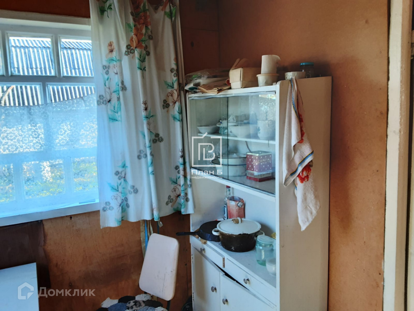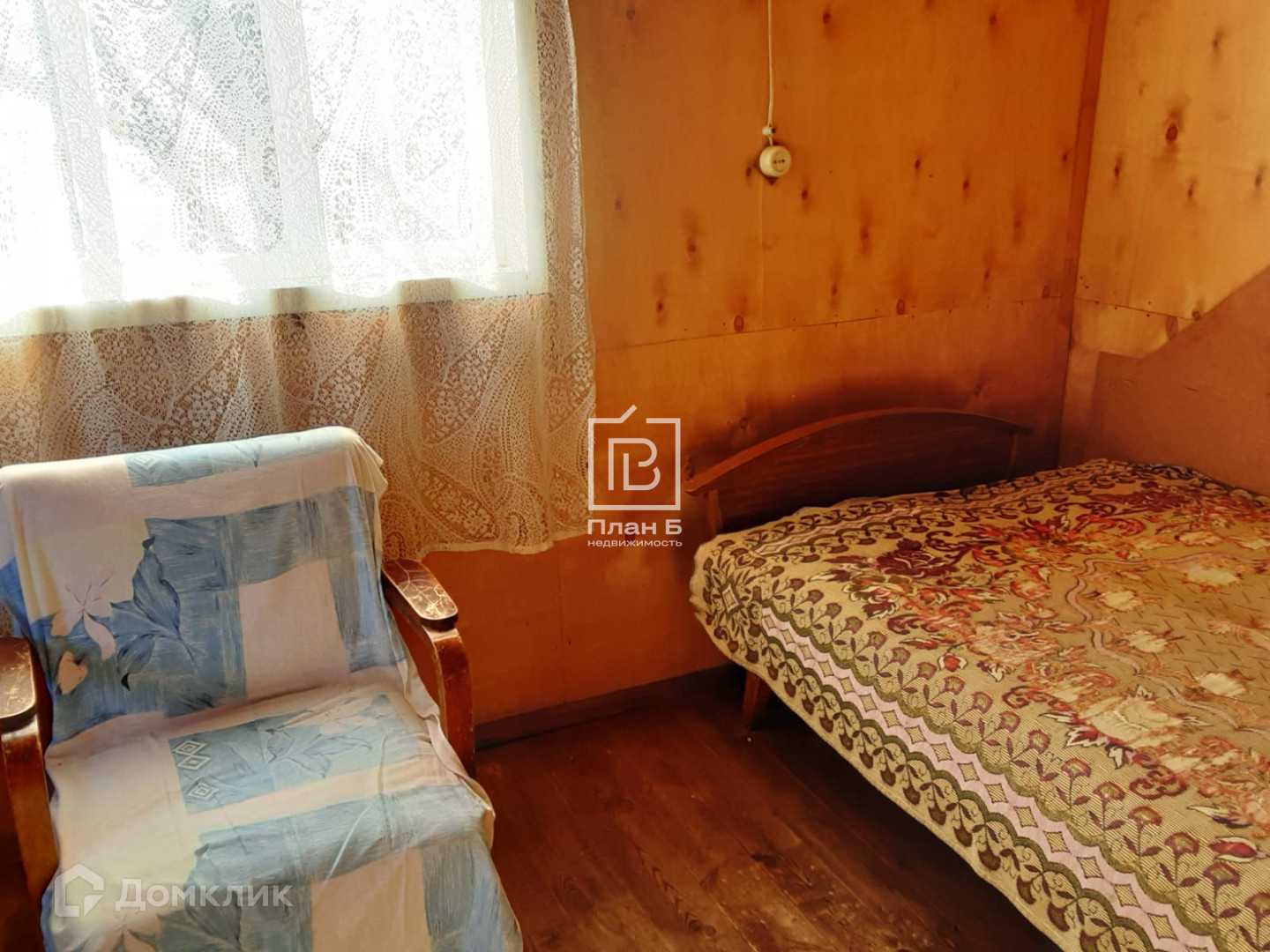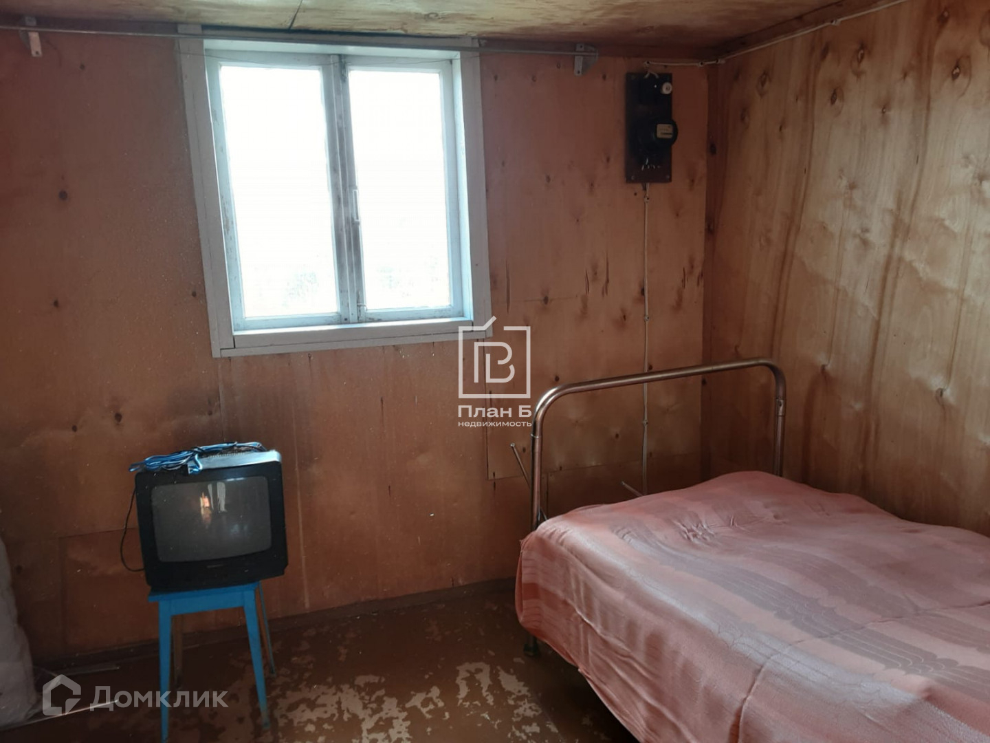 Дом каркасный, обитый досками и изнутри фанерой. Стоит на бетонных блоках. Дом с мансардой, вверху 1 комната, внизу комната и кухня.