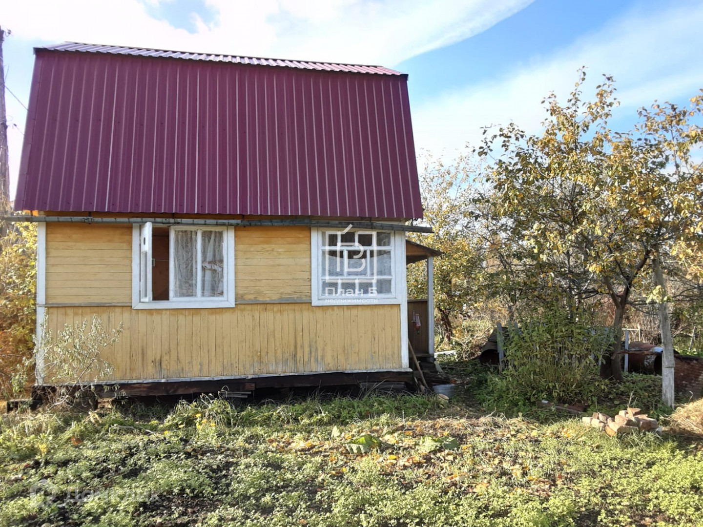 На участке есть сарай, 4 яблони (антоновка, синап, штрейфлинг и яровая коваленковкая молодая); 3 желтые сливы, 2 чернослива, 1куст кр смородины, 4 черной и много малины.
