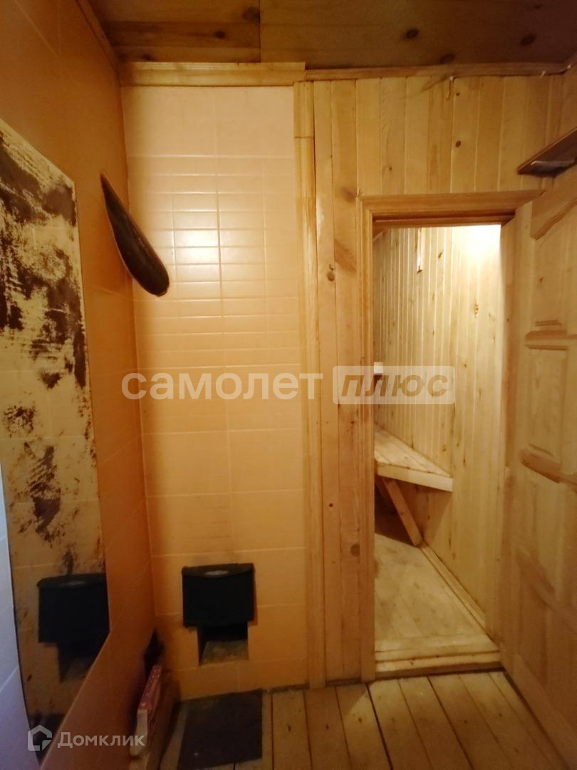 На 1 этаже расположена гостиная, с печью-камином, изнутри полностью обшит вагонкой, пол деревянный. Также на первом этаже расположена небольшая уютная баня.