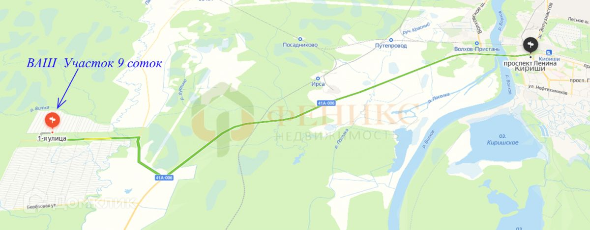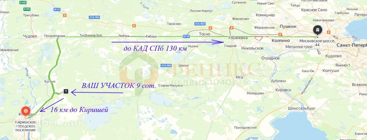 Расстояние от г.Кириши 16 км., от КАД СПб 130 км.