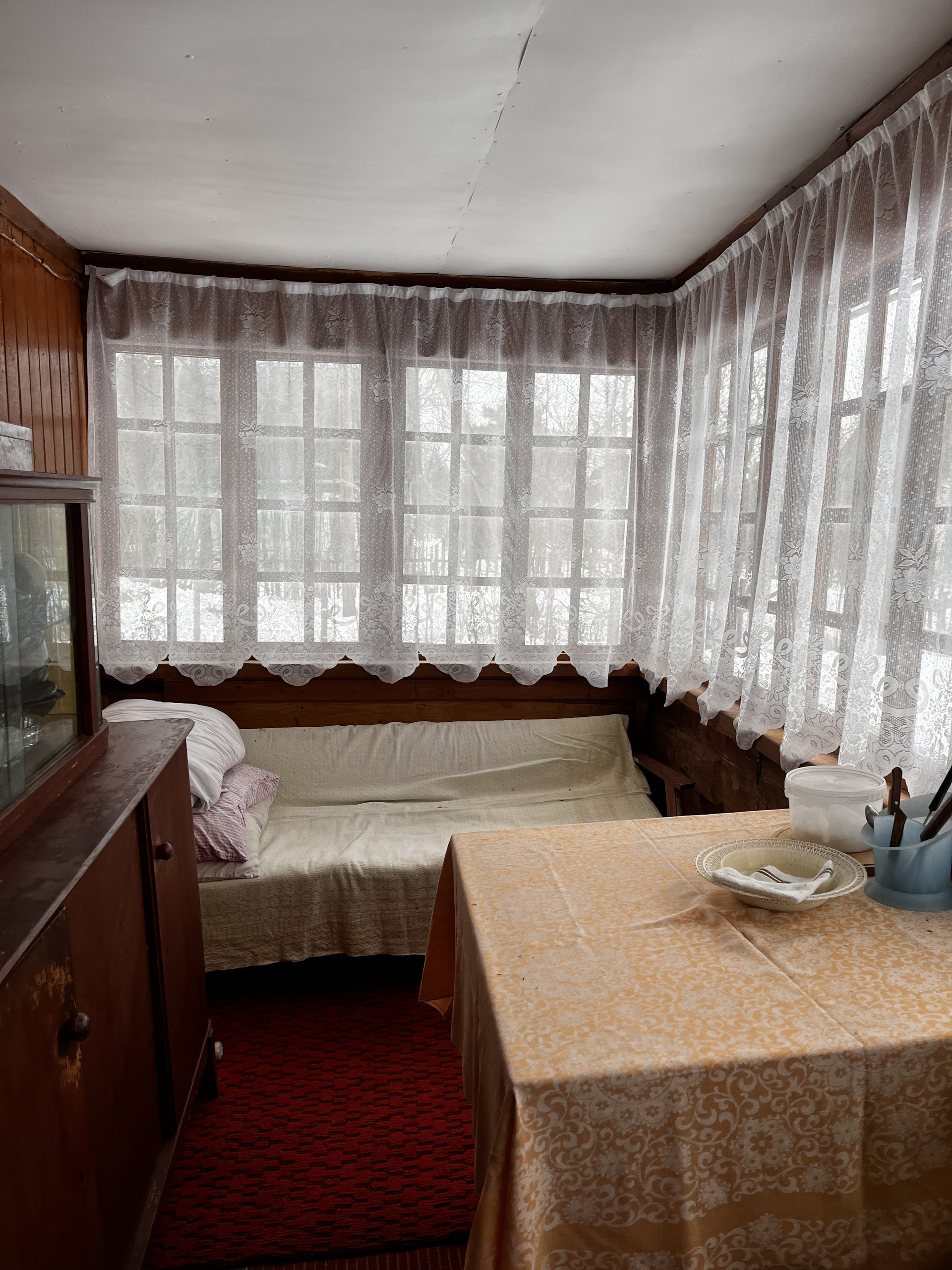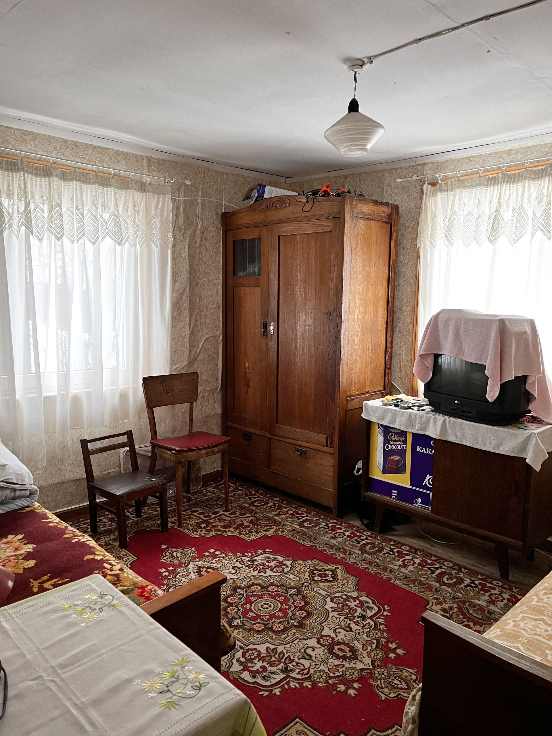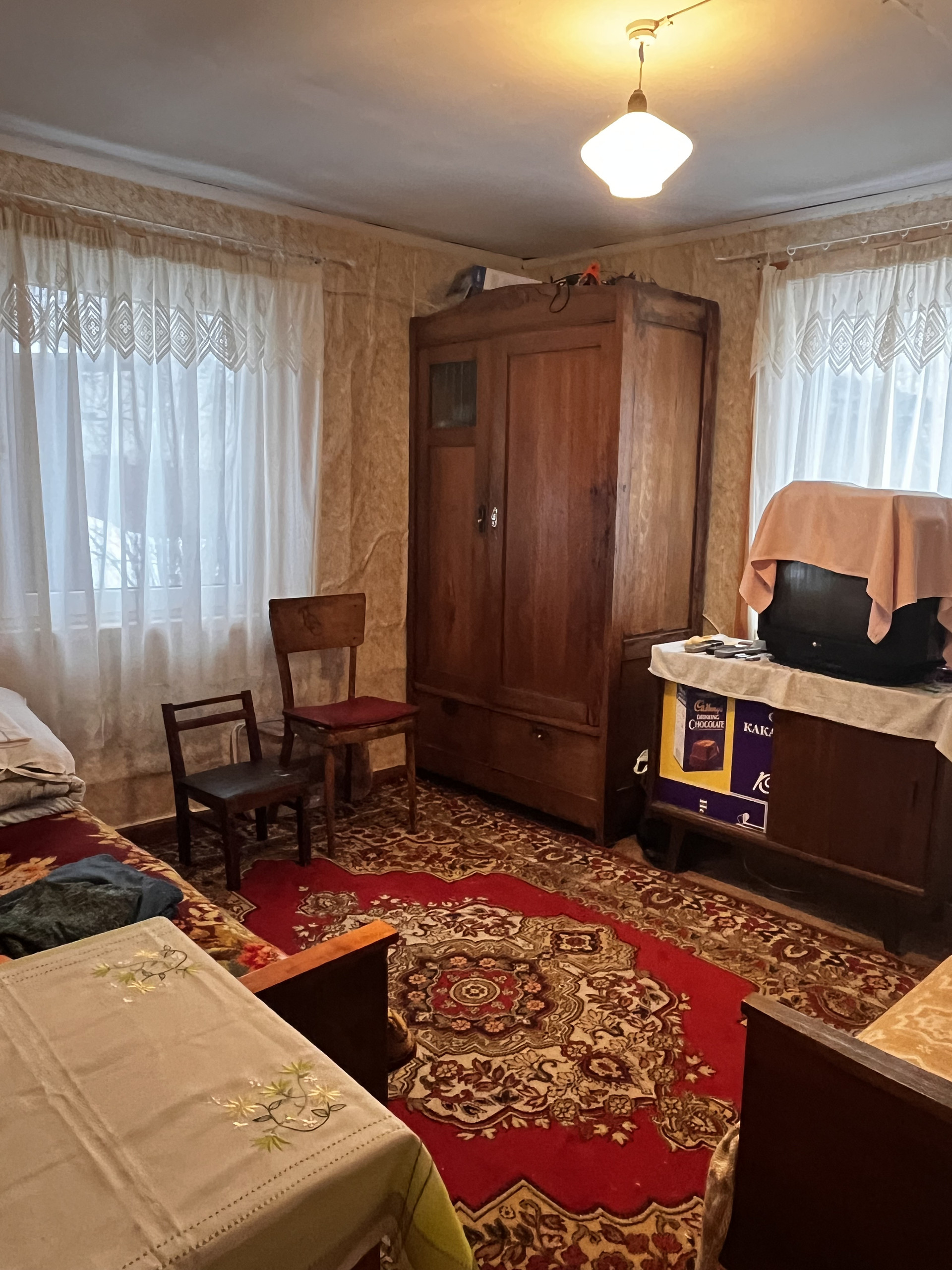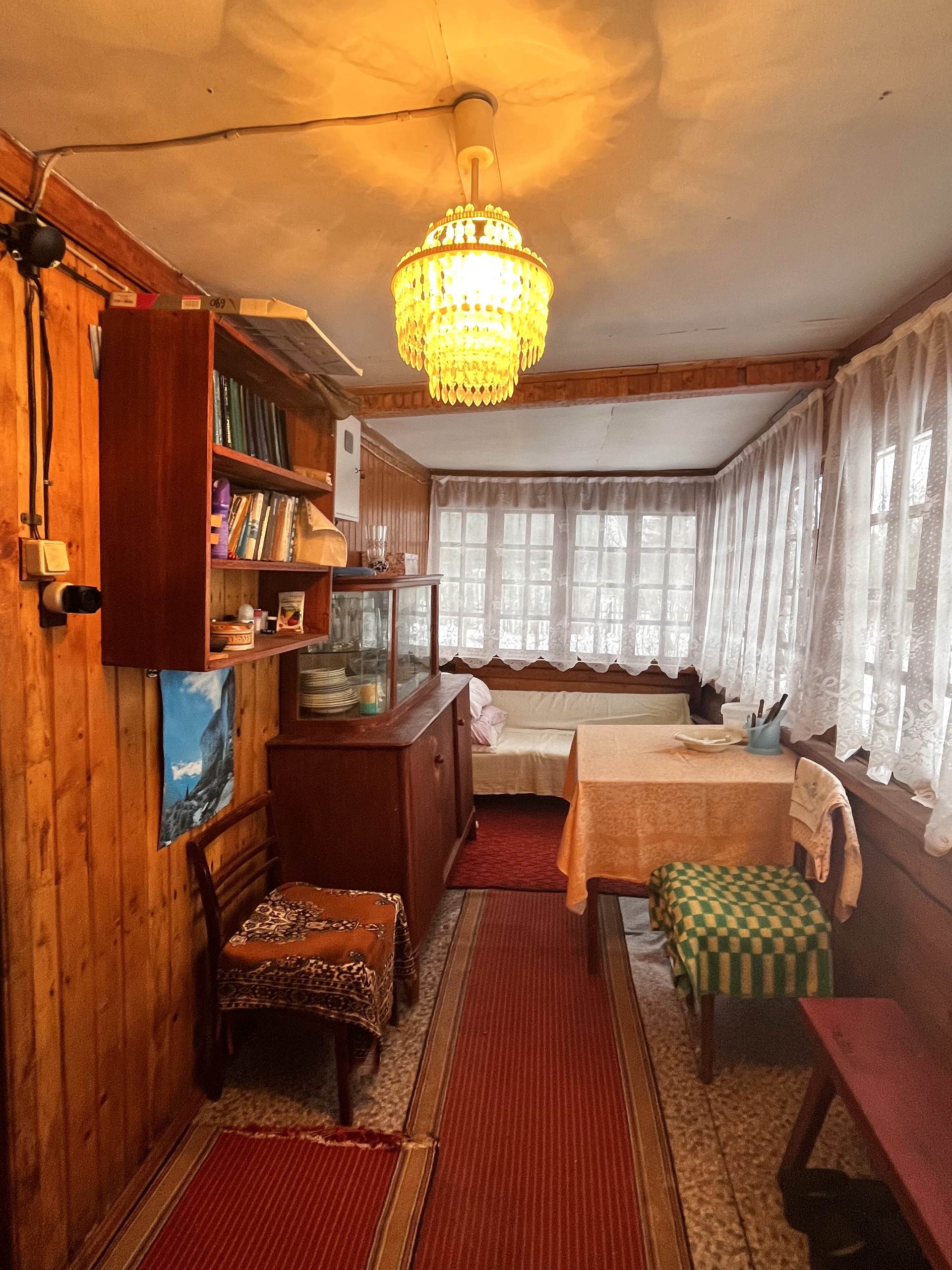 Все в очень хорошем состоянии, можно приехать и жить. В ремонте нуждается только баня.
