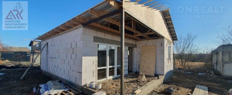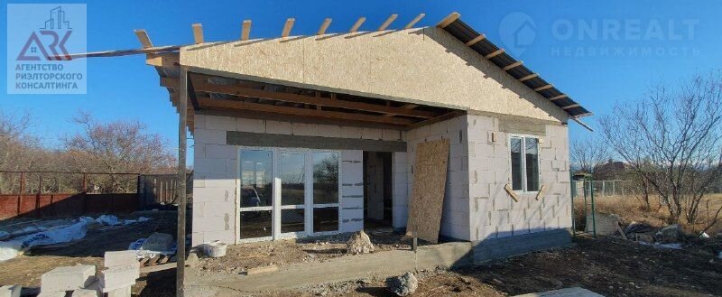 Дом имеет всего один этаж и строится с использованием качественных материалов. Фундамент выполнен в форме ленточного, а стены изготовлены из надёжного газобетона. Крыша покрыта металлочерепицей, обеспечивая надёжную защиту от непогоды.