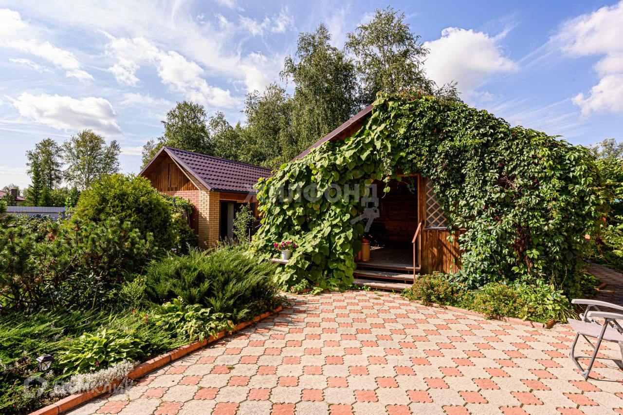 ТЕРРИТОРИЯ огорожена высоким забором. Имеется дровяная БАНЯ с большой верандой и барбекю. ГАРАЖ на один автомобиль, парковочное место, две теплицы, газоны, грядки. Дорожки и площадка перед домом выложены тротуарной плиткой.