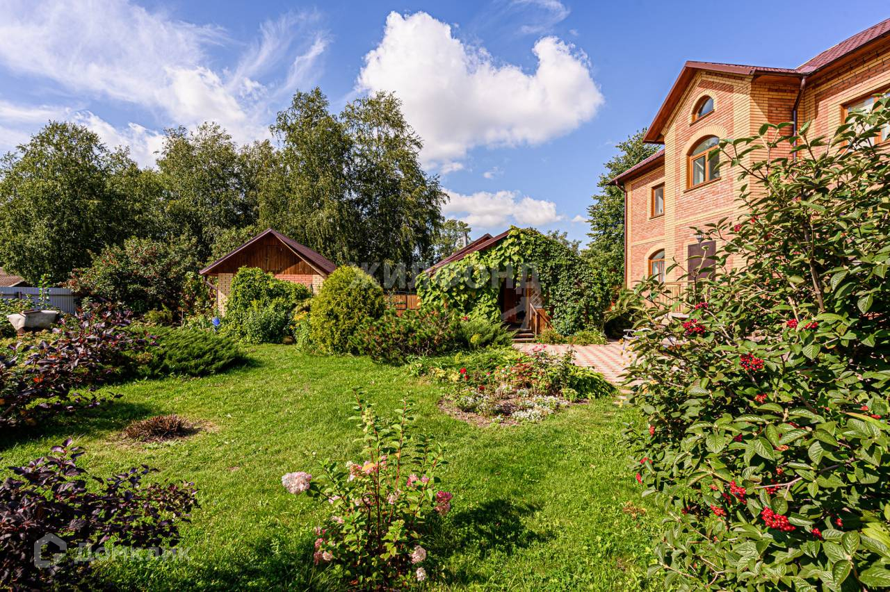 На участке много хвойных, плодовых и декоративных деревьев и кустарников, цветников. Дом утопает в зелени.