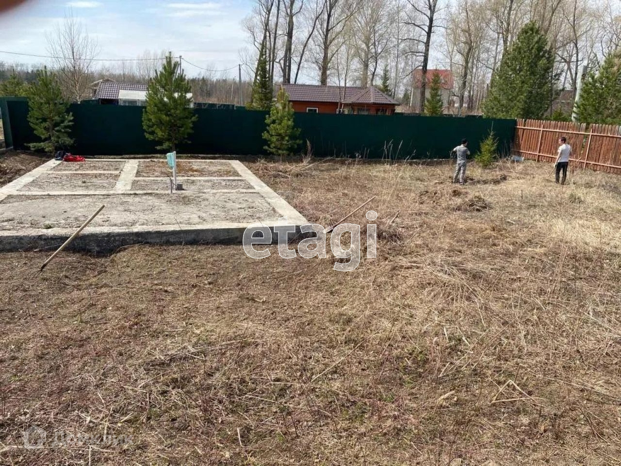 * На участке 3 фундамента с коммуникациями ( дом, баня, гараж). Капитальный забор с воротами.