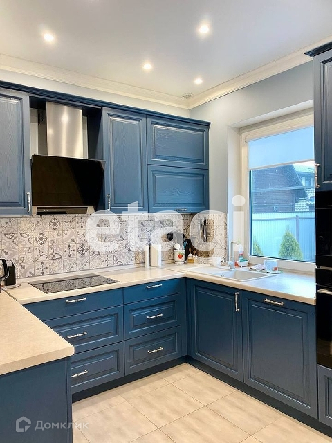 В доме выполнен дизайнерский ремонт, он полностью благоустроен и меблирован – остается вся мебель, бытовая техника и предметы интерьера. Новый встроенный кухонный гарнитур с посудомойкой, измельчителем, кофе-машиной, электрической и газовой плитой.