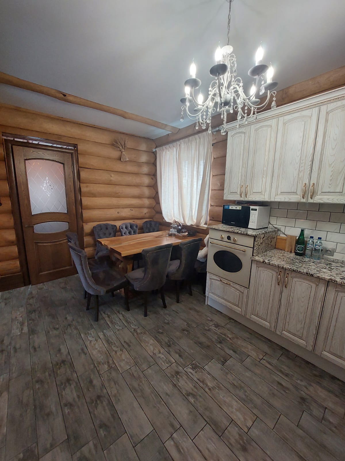 Кухня – массив ясеня, столешница – натуральный камень, техника Kuppersberg.