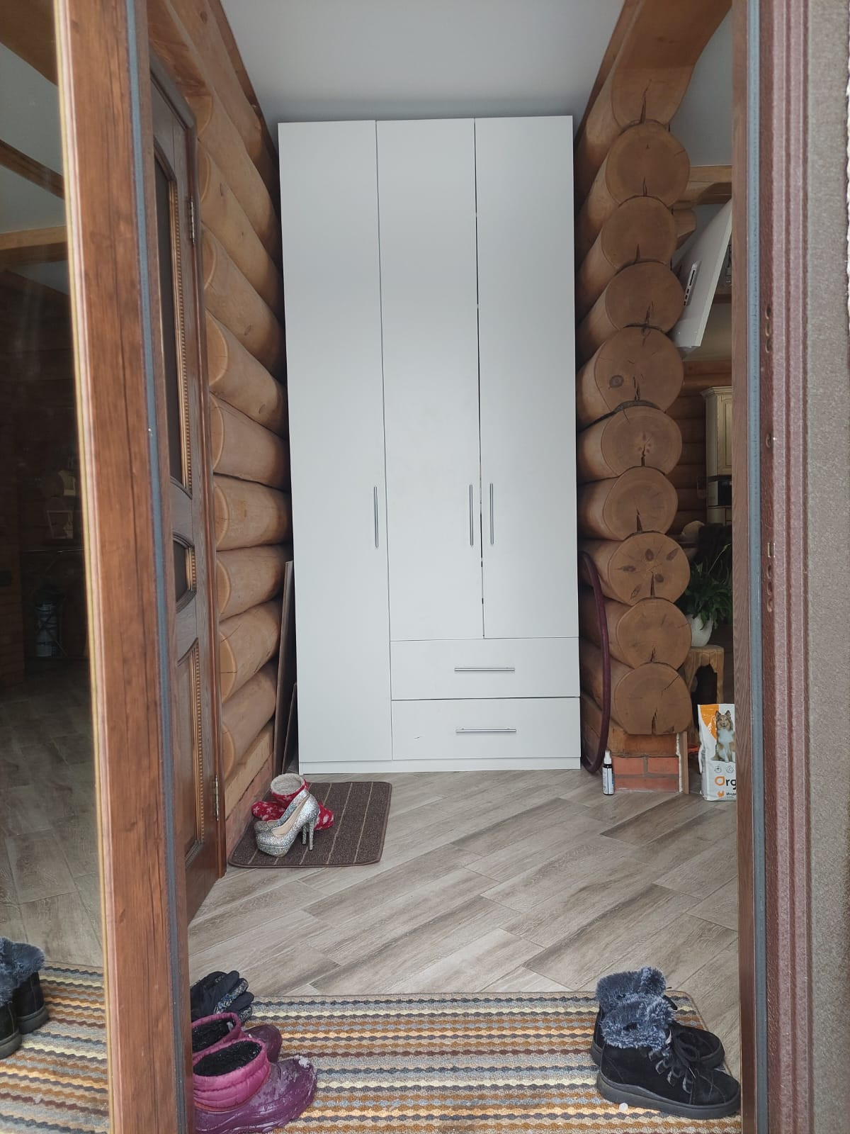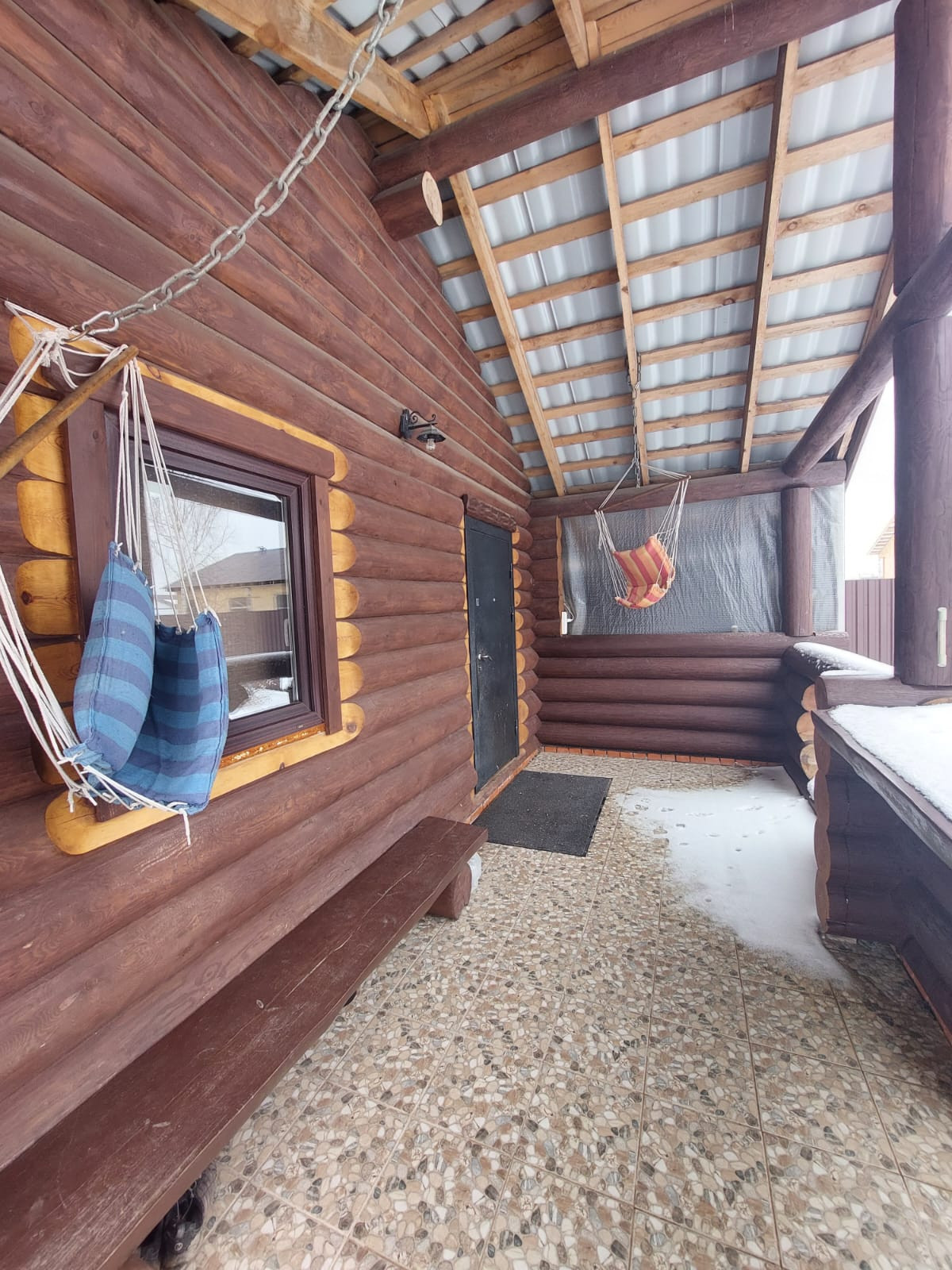 Второй этаж – готовность под чистовую отделку на полу, стены требуется шлифовка, покраска. Перед домом закручены сваи, чтобы сделать террасу.