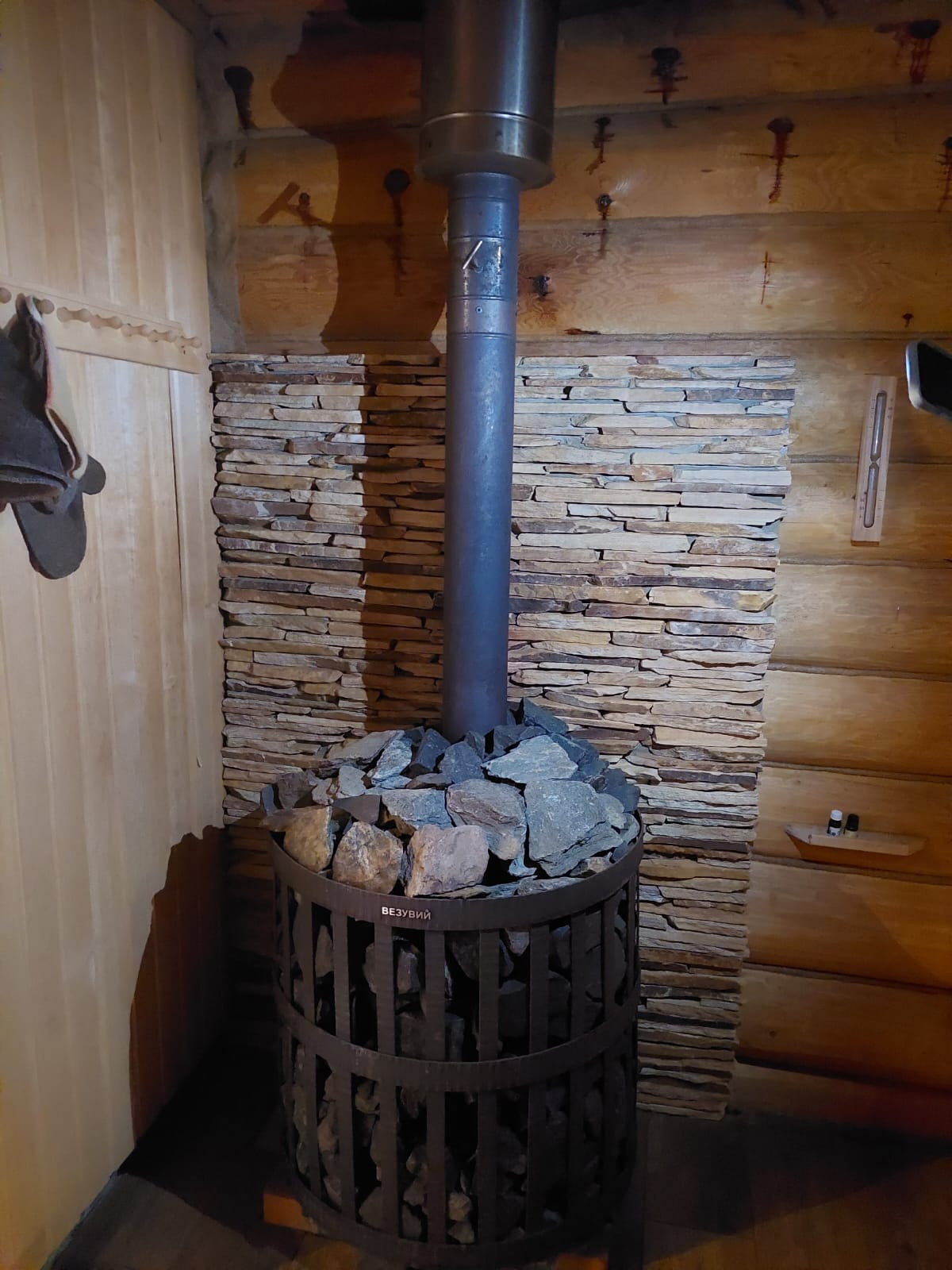 Баня – зона отдыха оборудована кухней, в помывочной зоне – душевая кабина, санузел, в парной – стоит хорошая чугунная печь Везувий под 250 кг камня (классическая русская баня). К бане подведено центральное водоснабжения.
