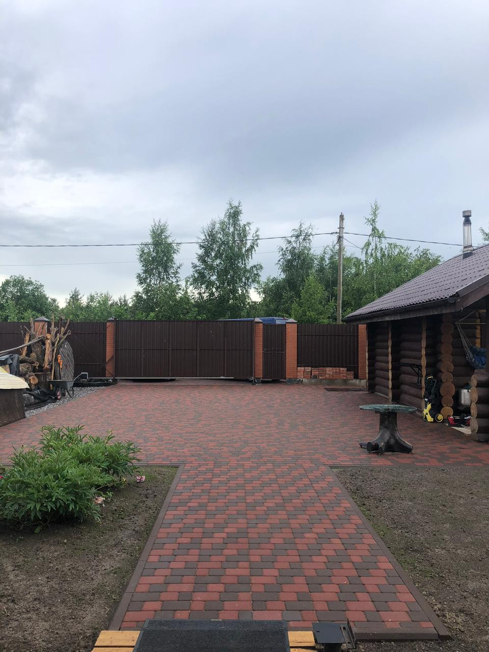 Сам участок полностью огорожен забором, откатанные ворота на ленточном фундаменте. Сделана заезд и дорожки из тротуарной плитки.
