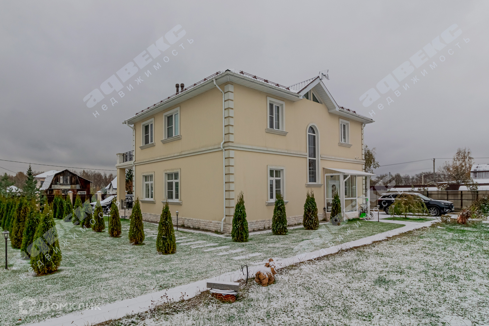 Дом огорожен забором с автозаездом шириной 4 метра, так же есть видео наблюдение всего периметра двора. Во дворе есть баня, бесетка, детская площадка и парковка для а/м. Двор выложен дорогостоящей тротуарной плиткой толщиной 80мм, к сожалению, на фото не видно, но к Вашему приезду мы почистим двор от снега, есть специальная машина.