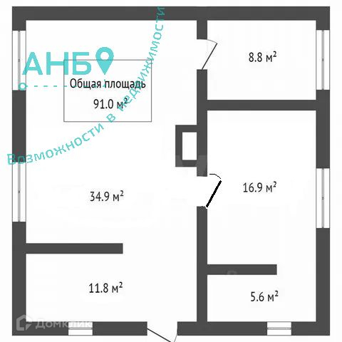 Жилая площадь 55.6 м2