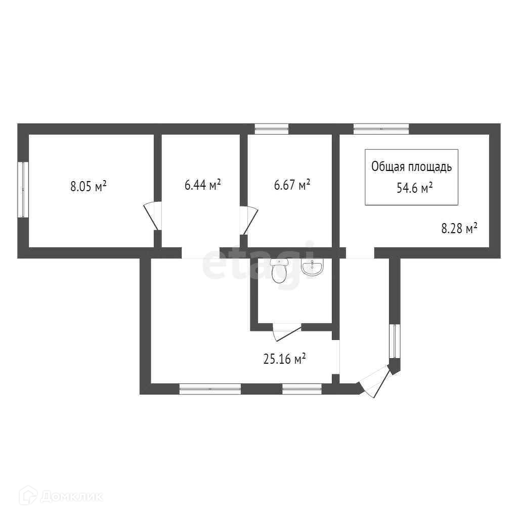 Общая площадь 54.6 м2