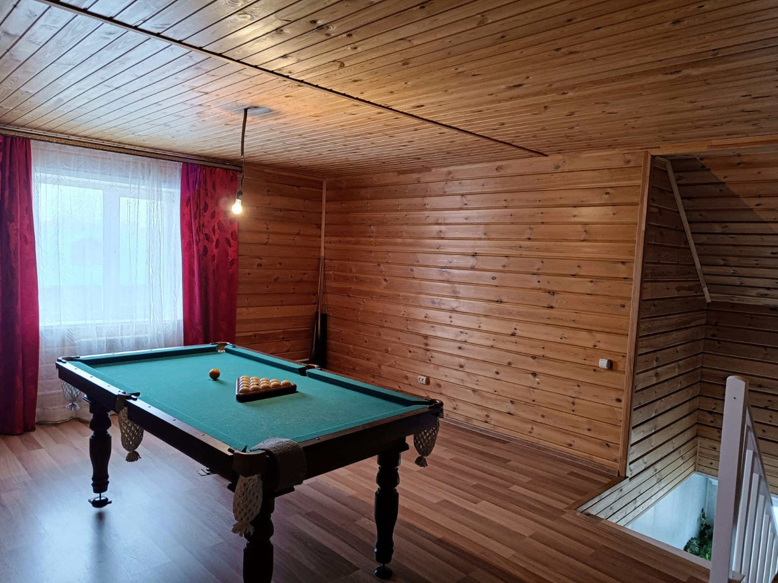 На втором этаже две просторные комнаты, где установлен бильярд.