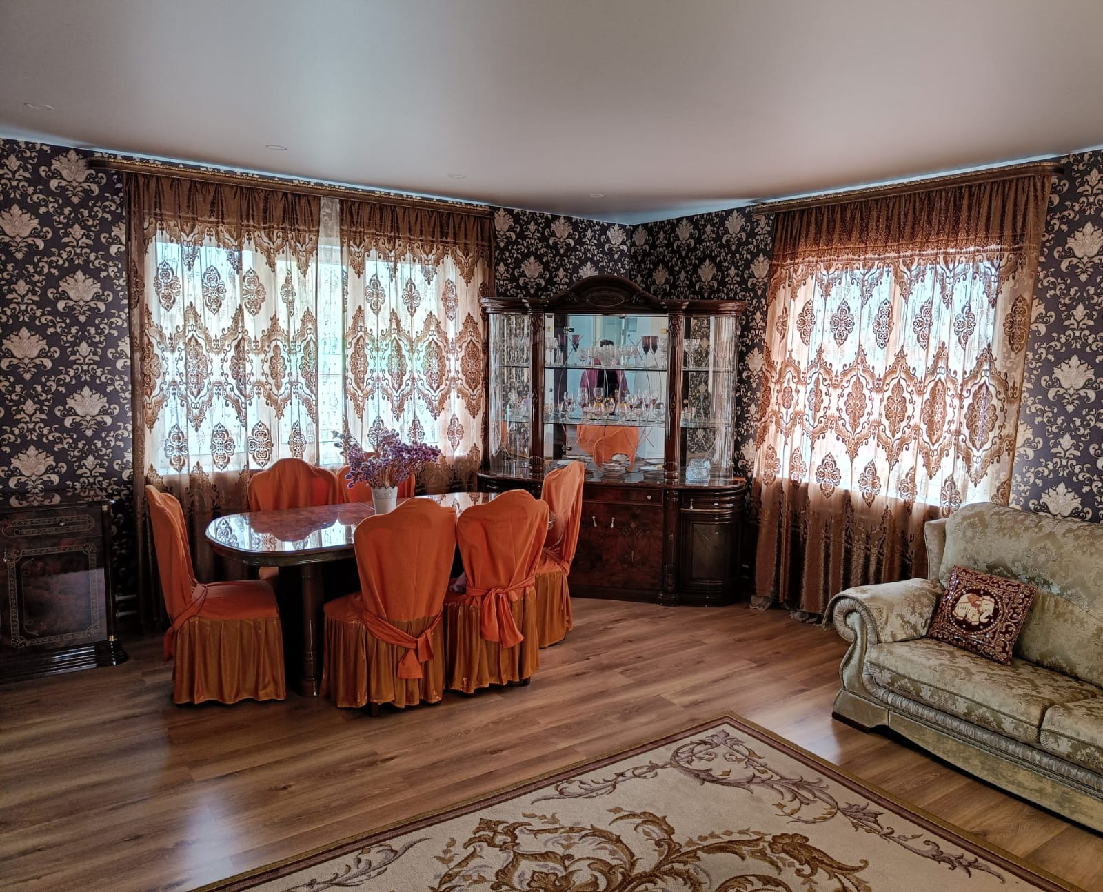 На первом этаже огромная кухня , спальня, просторная гостиная и большой санузел отделанный качественными современными материалами,свободная прихожая, техническое помещение (заведена Газовая магистраль).