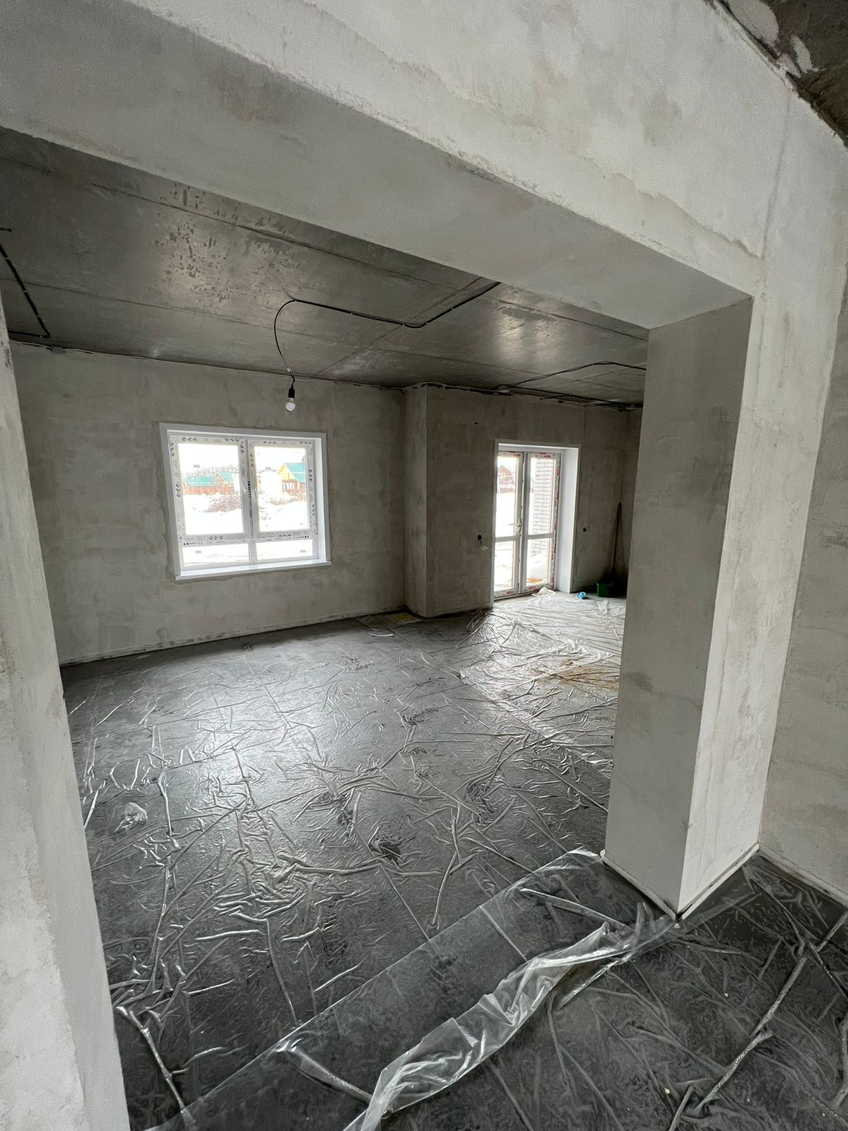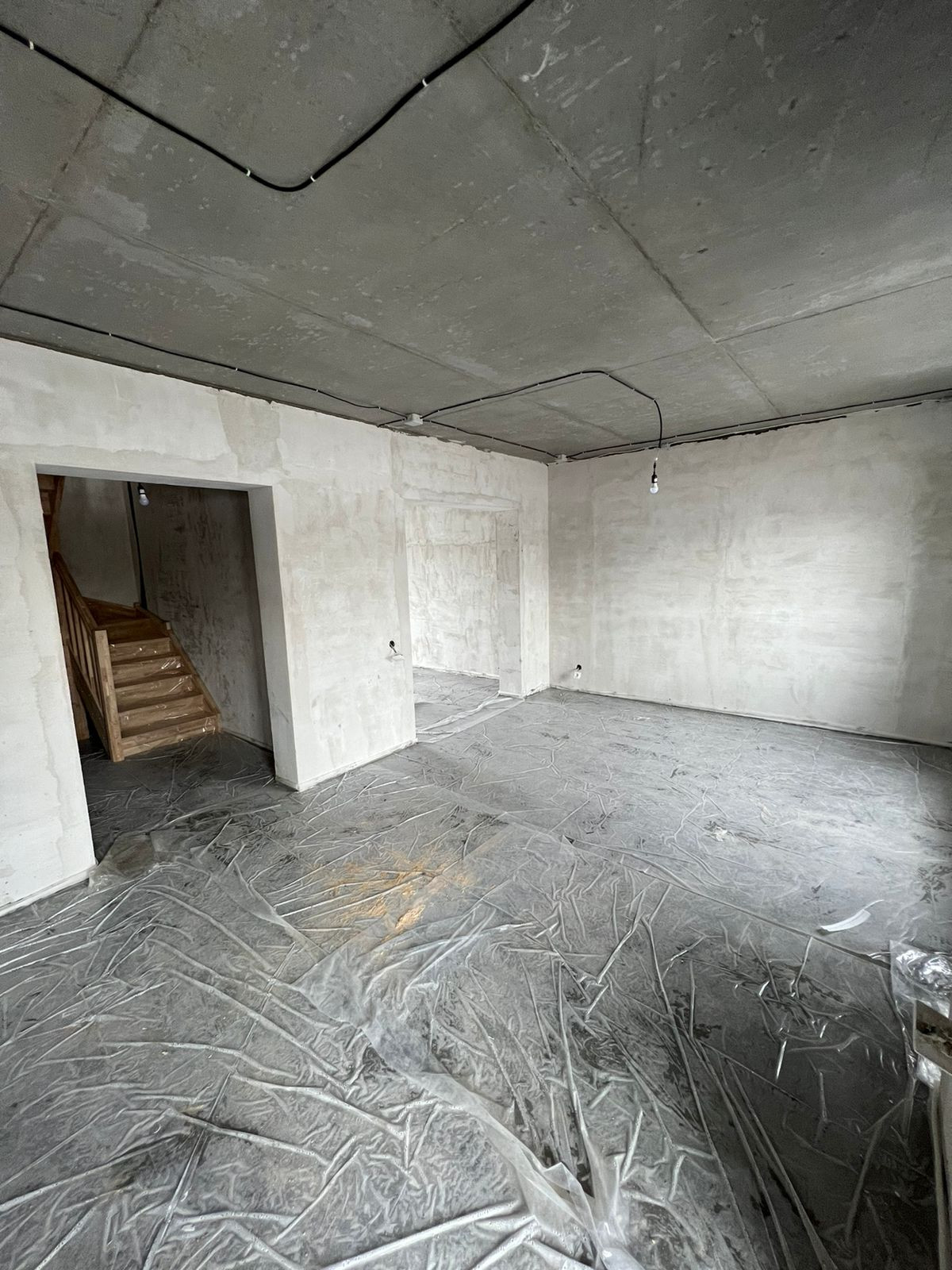 Дом сдаётся готовый под чистовую отделку, оштукатуренные стены , ровный пол.