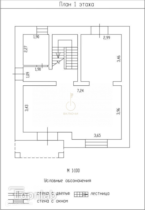 Первый этаж: кухня-гостинная, прихожая, санузел.