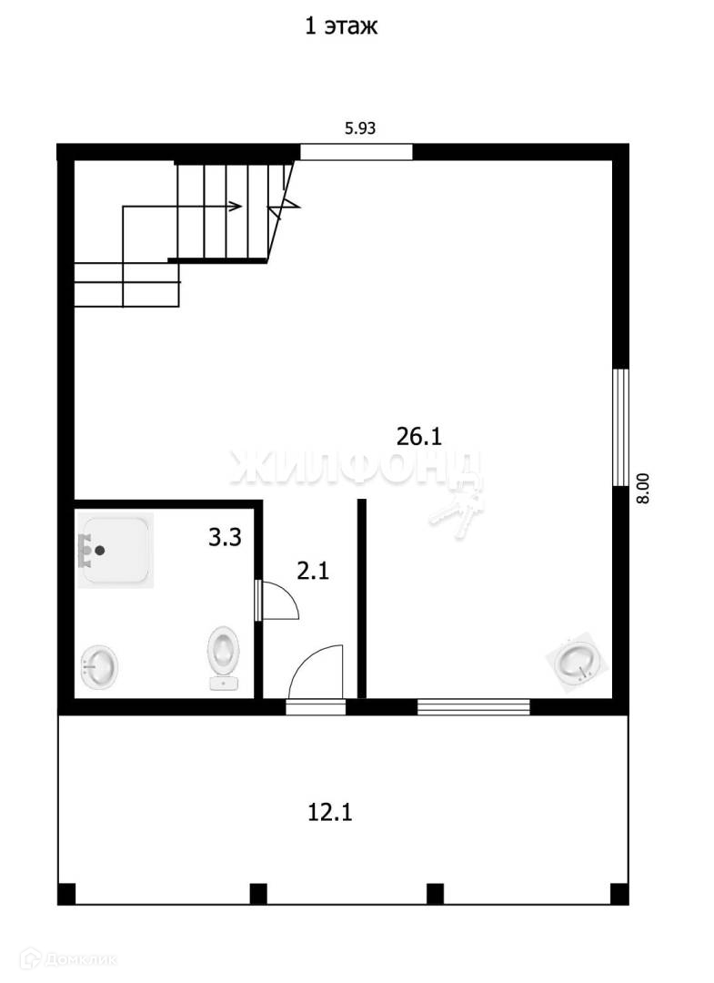 На террасе ( 12 кв.м) находится стол и скамья для чаепитий.