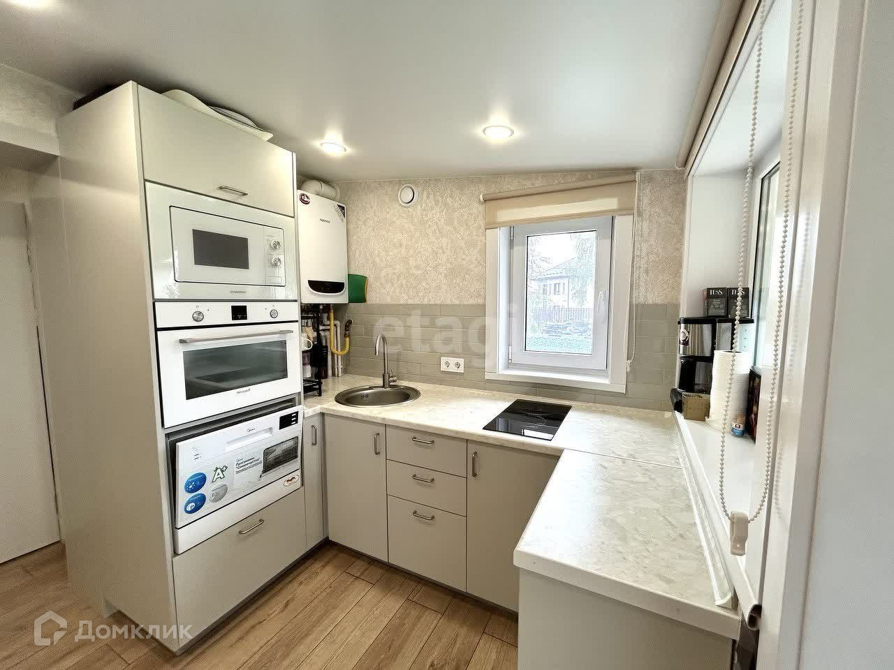 Остается кухонный гарнитур с техникой (плита, посудомоечная машина, микроволновка, духовой шкаф). Так же кондиционер, шкаф.