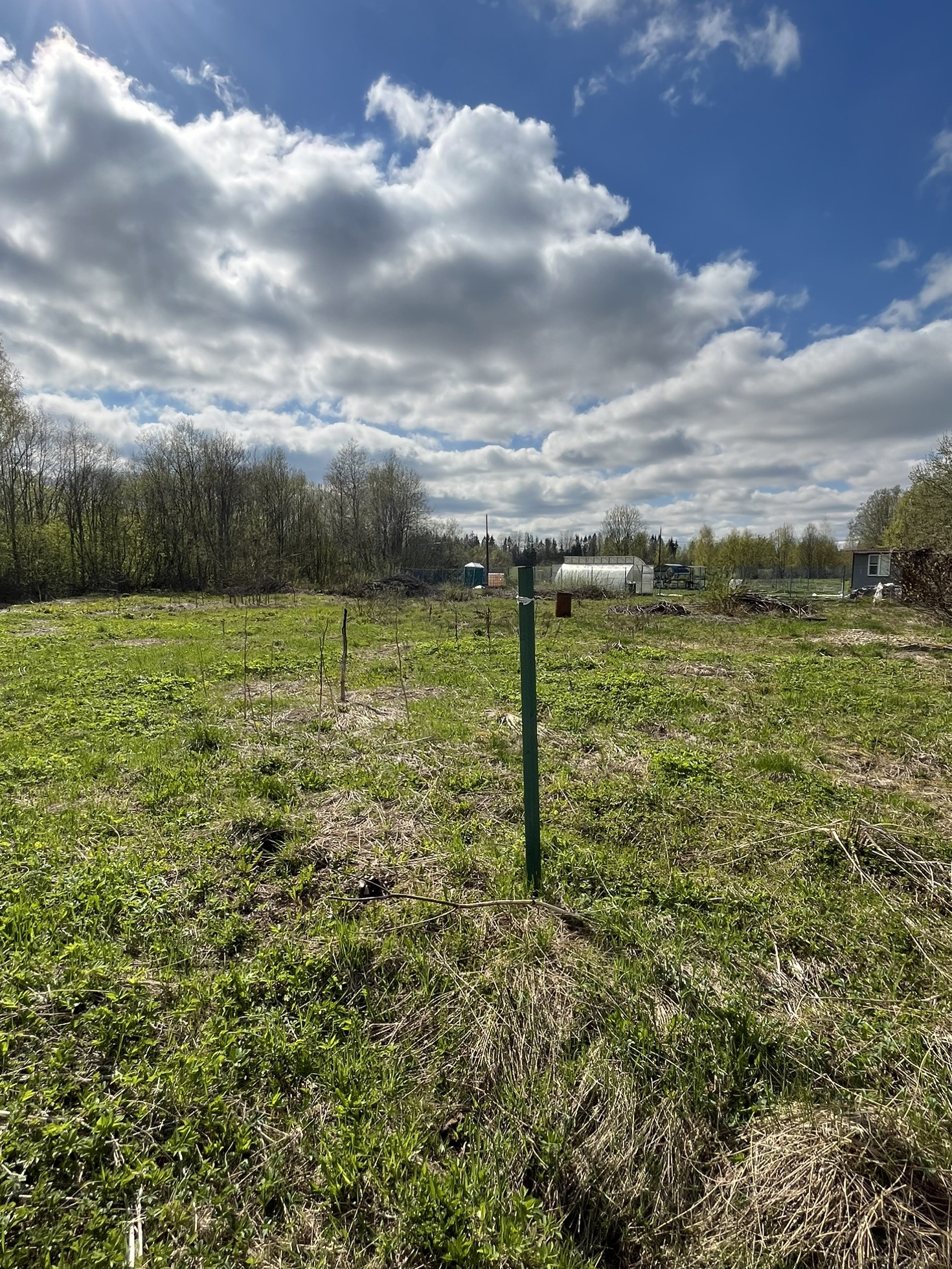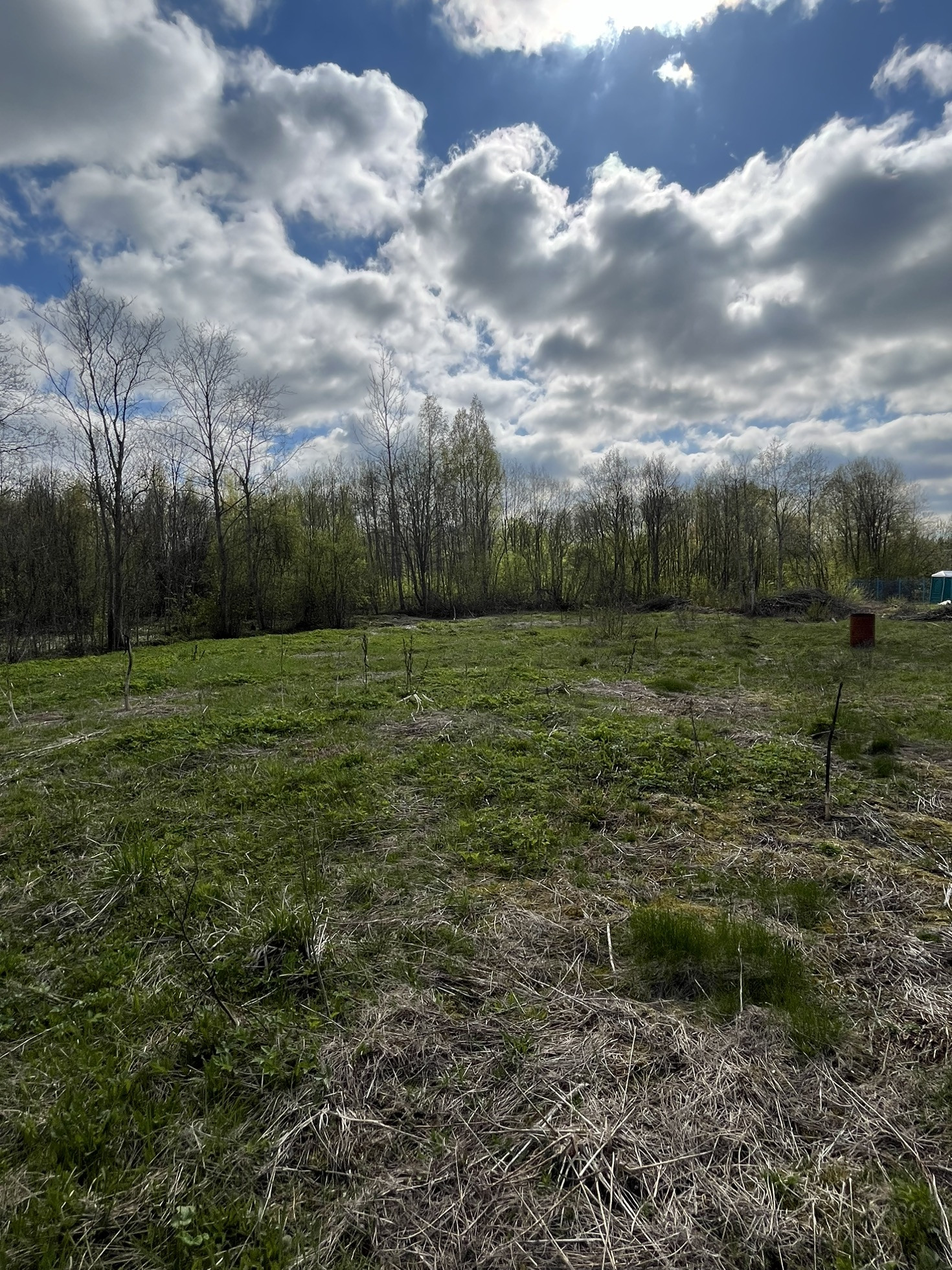 Территория расчищена от мелких деревьев и кустов. Сделано межевание.