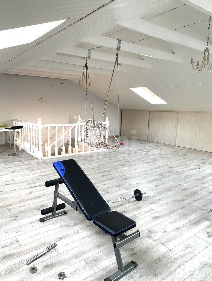 Второй этаж использовали как спортзал, кинотеатр и зону игровой для детей, так же там встроенные шкафы и большая зона хранения вещей.