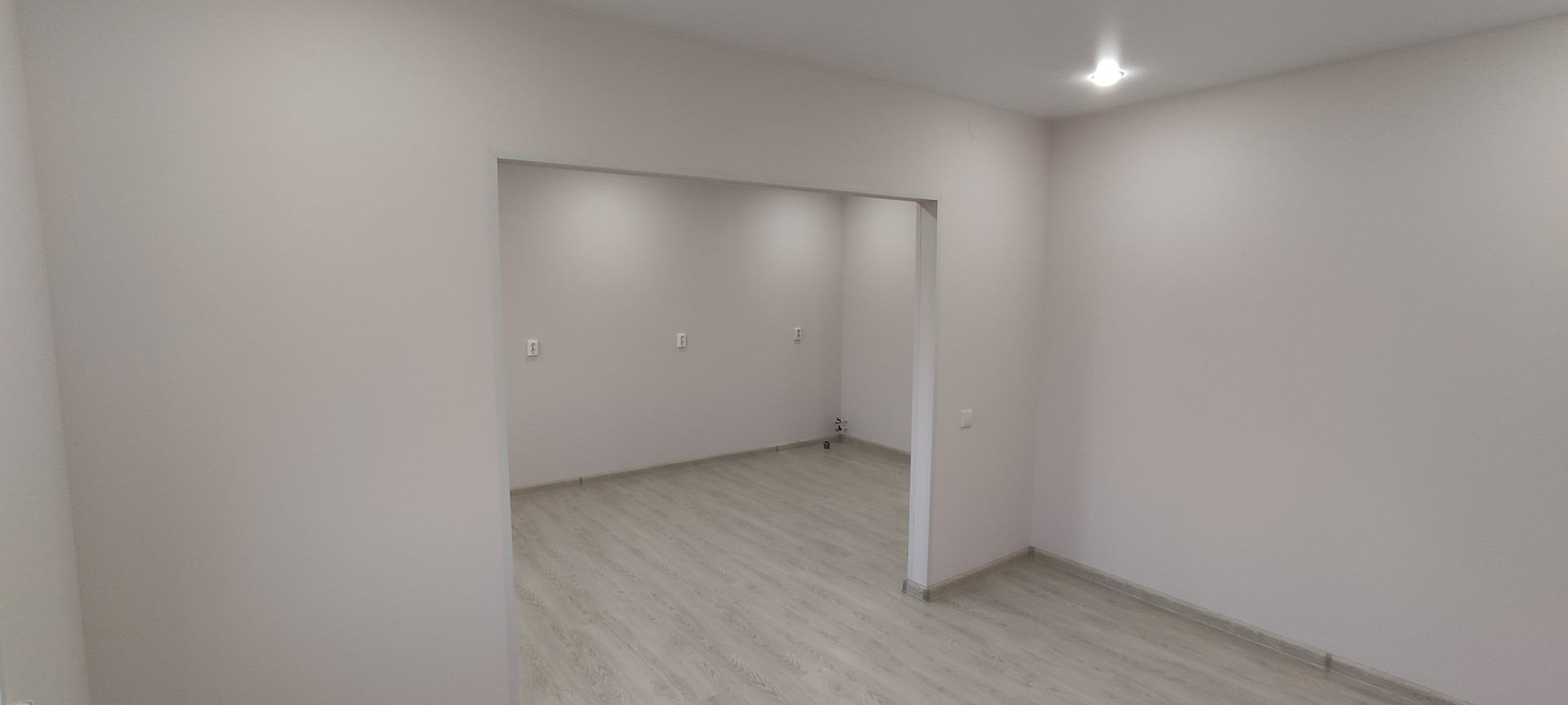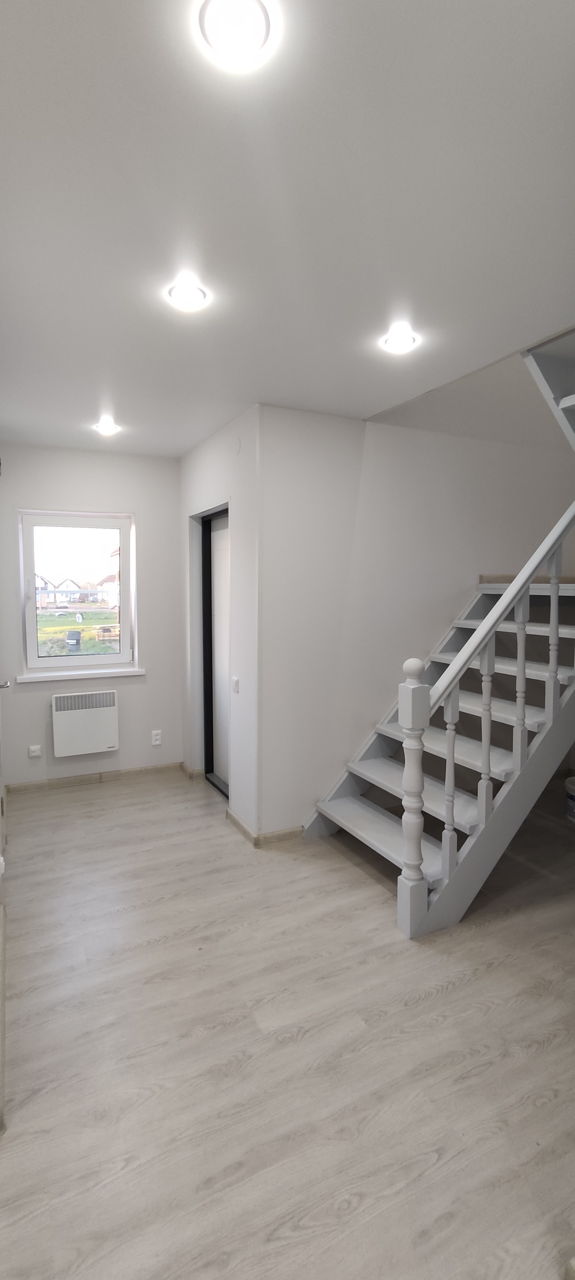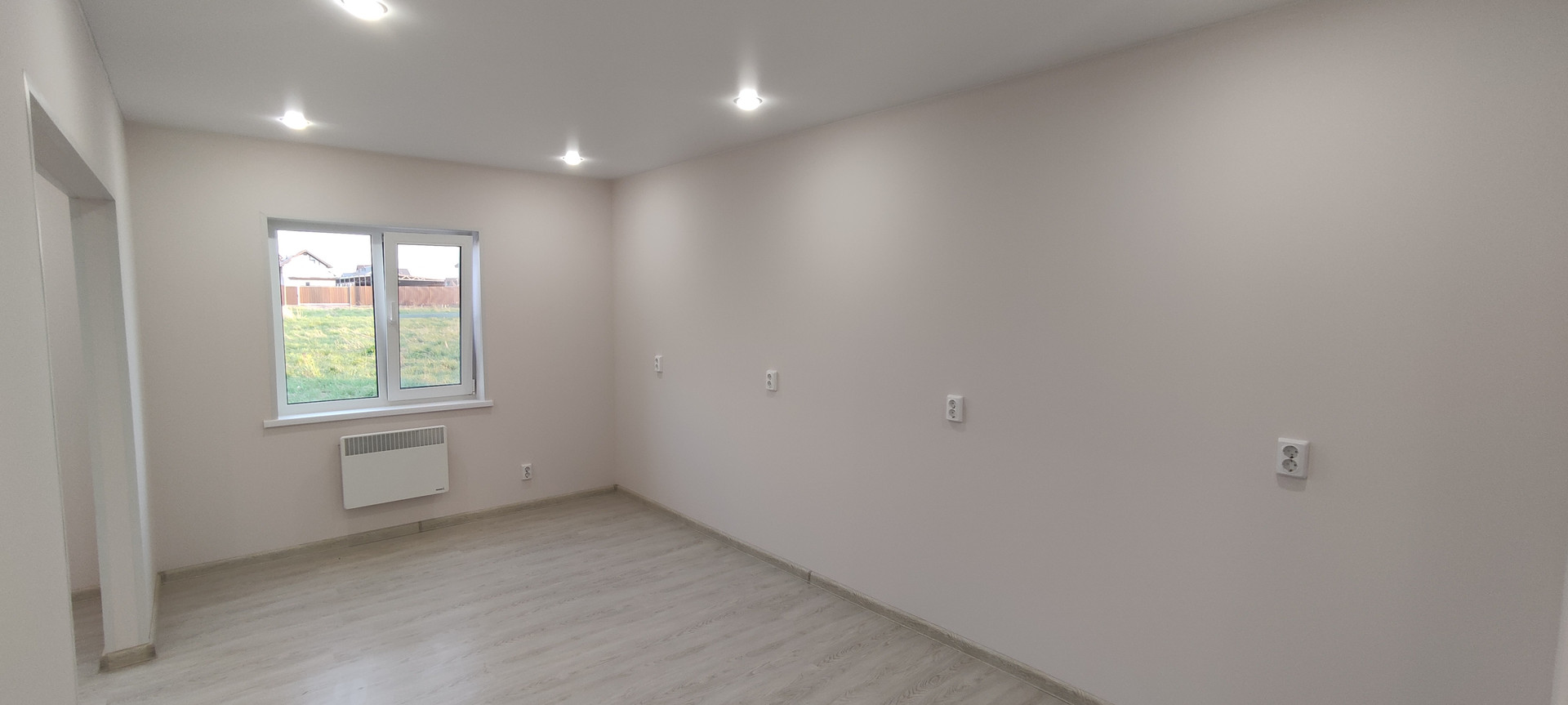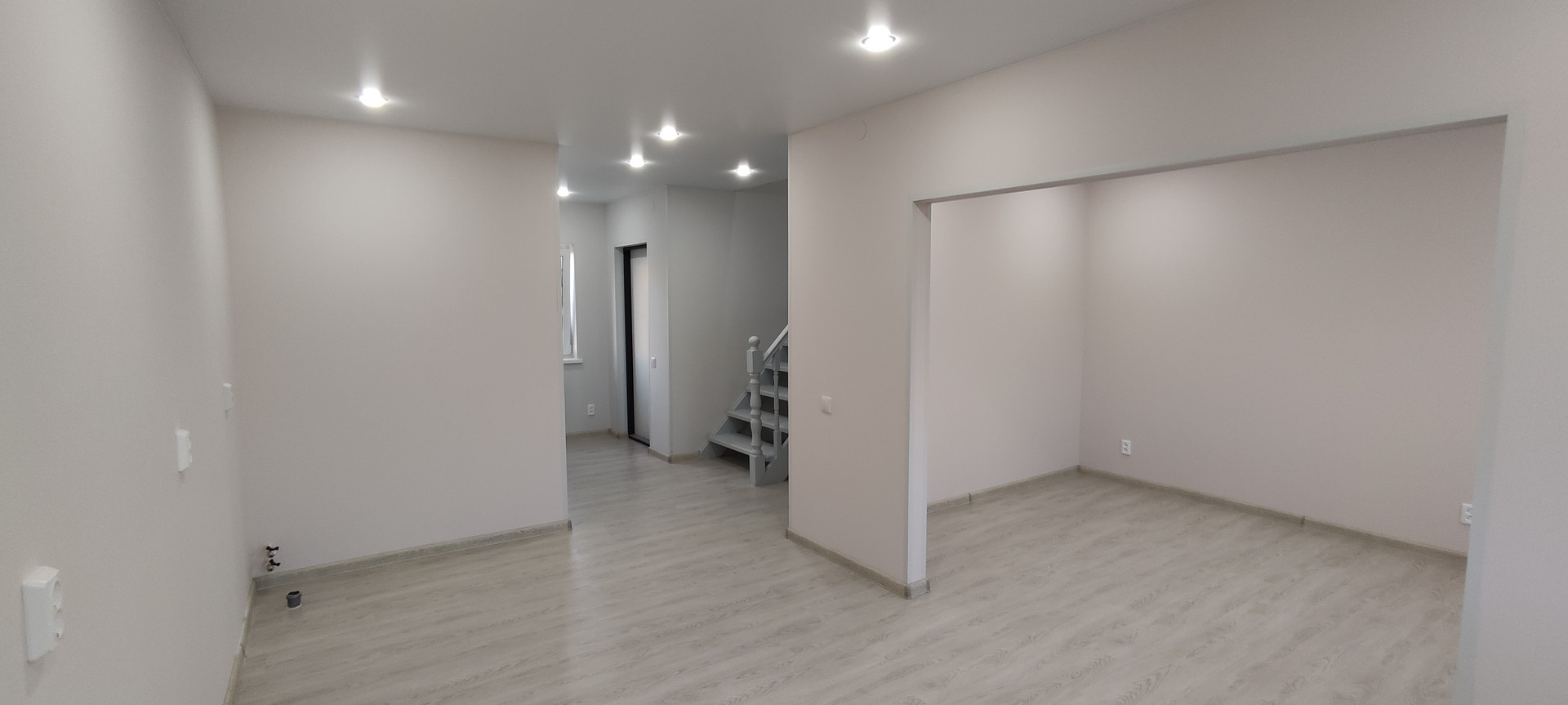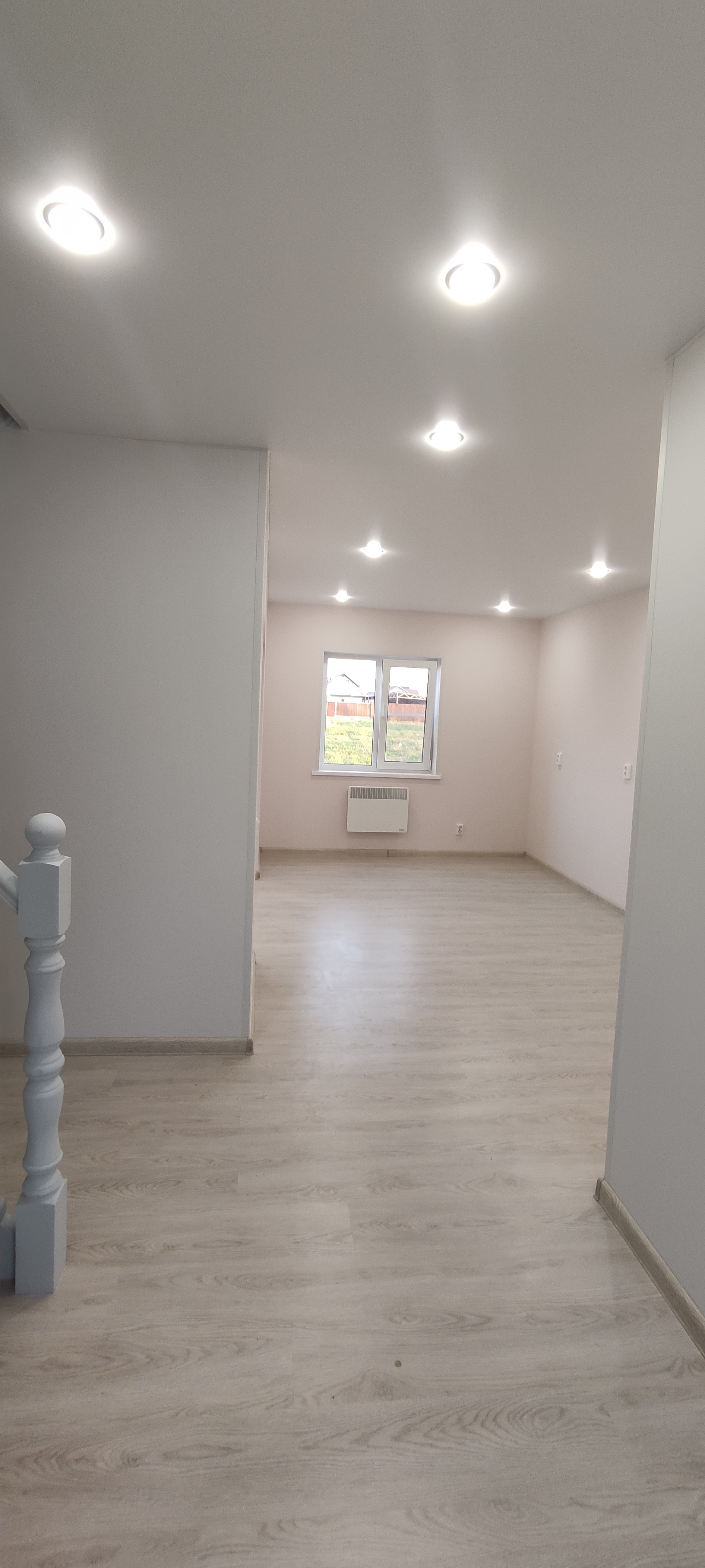 - Внутренняя отделка: крашеные стены по гипсокартону (Можно мыть, легко перекрасить, можно поклеить обои), натяжные потолки, ламинат, керамогранит;