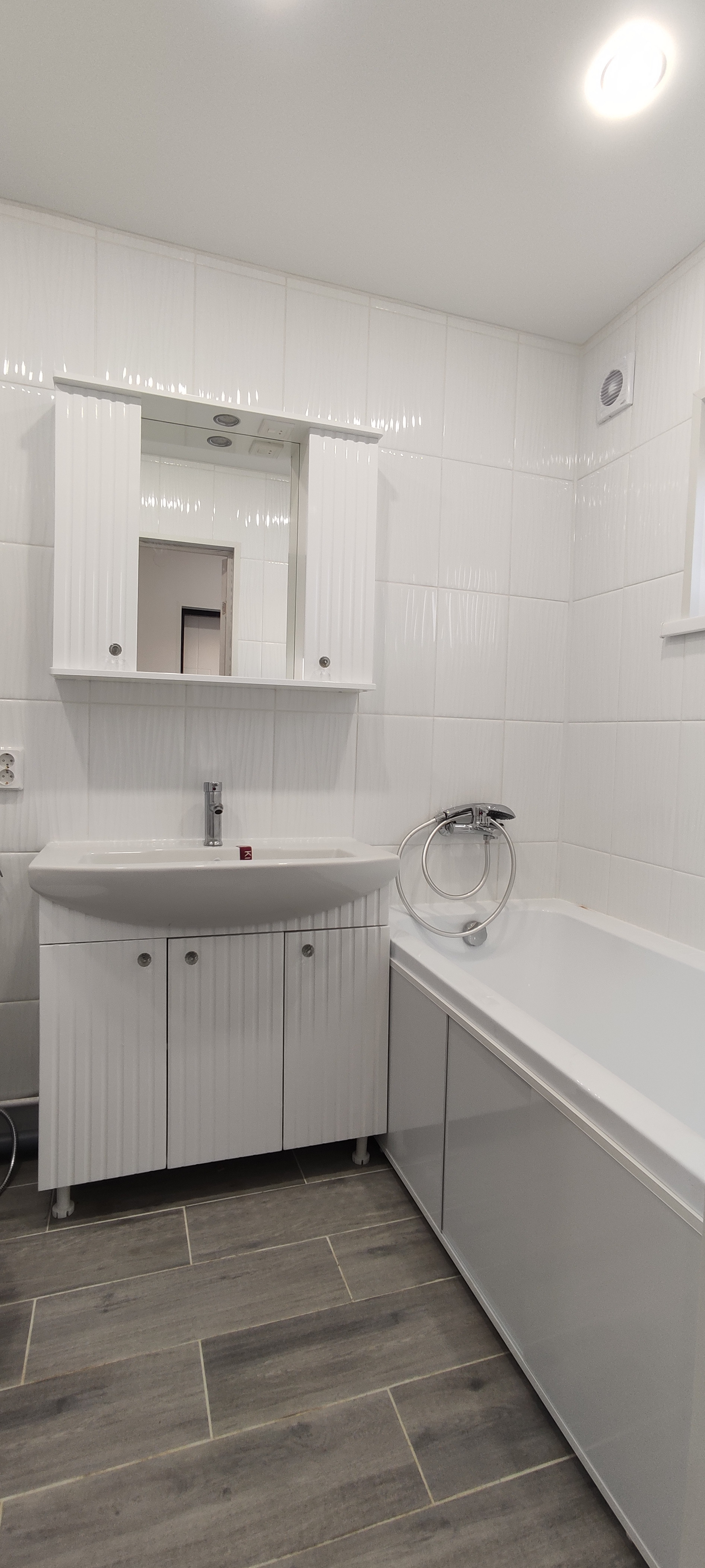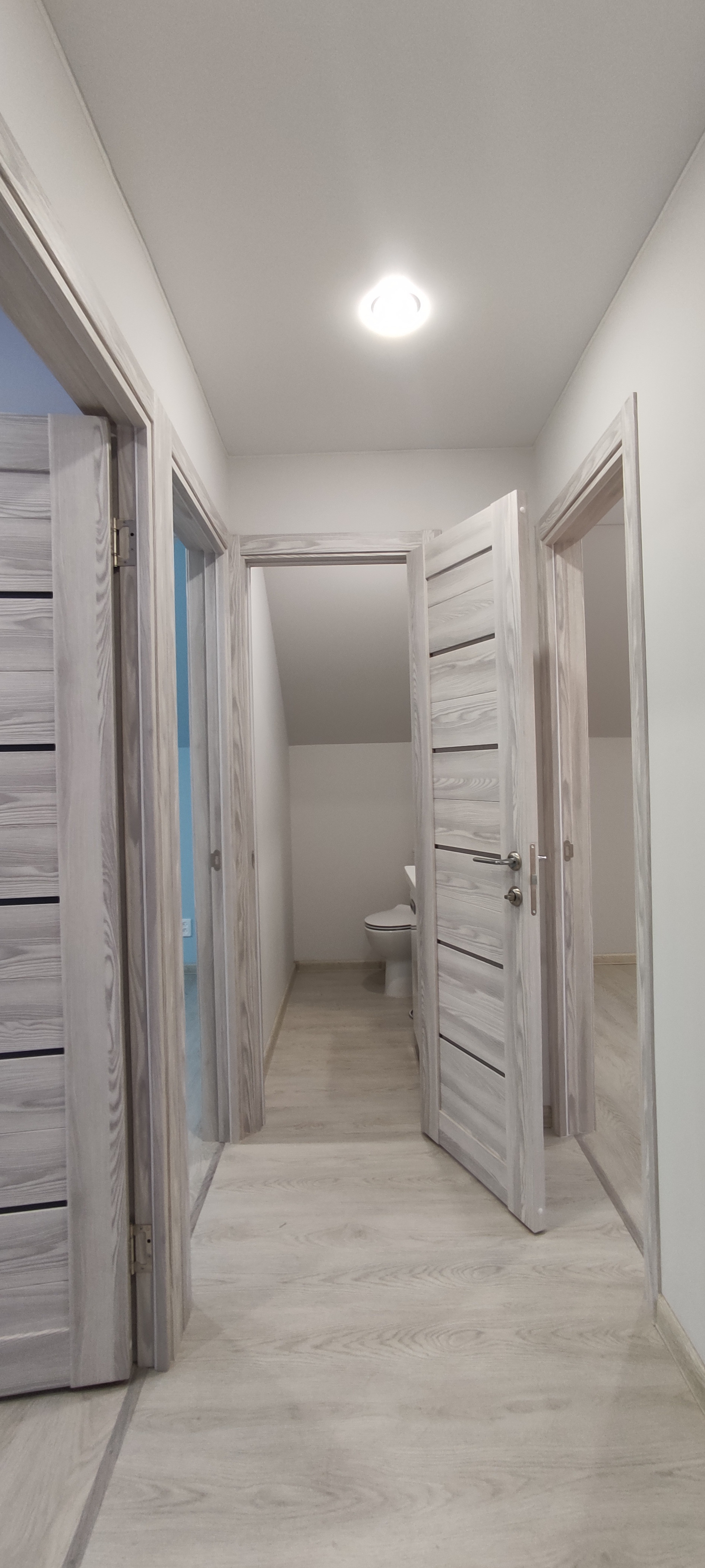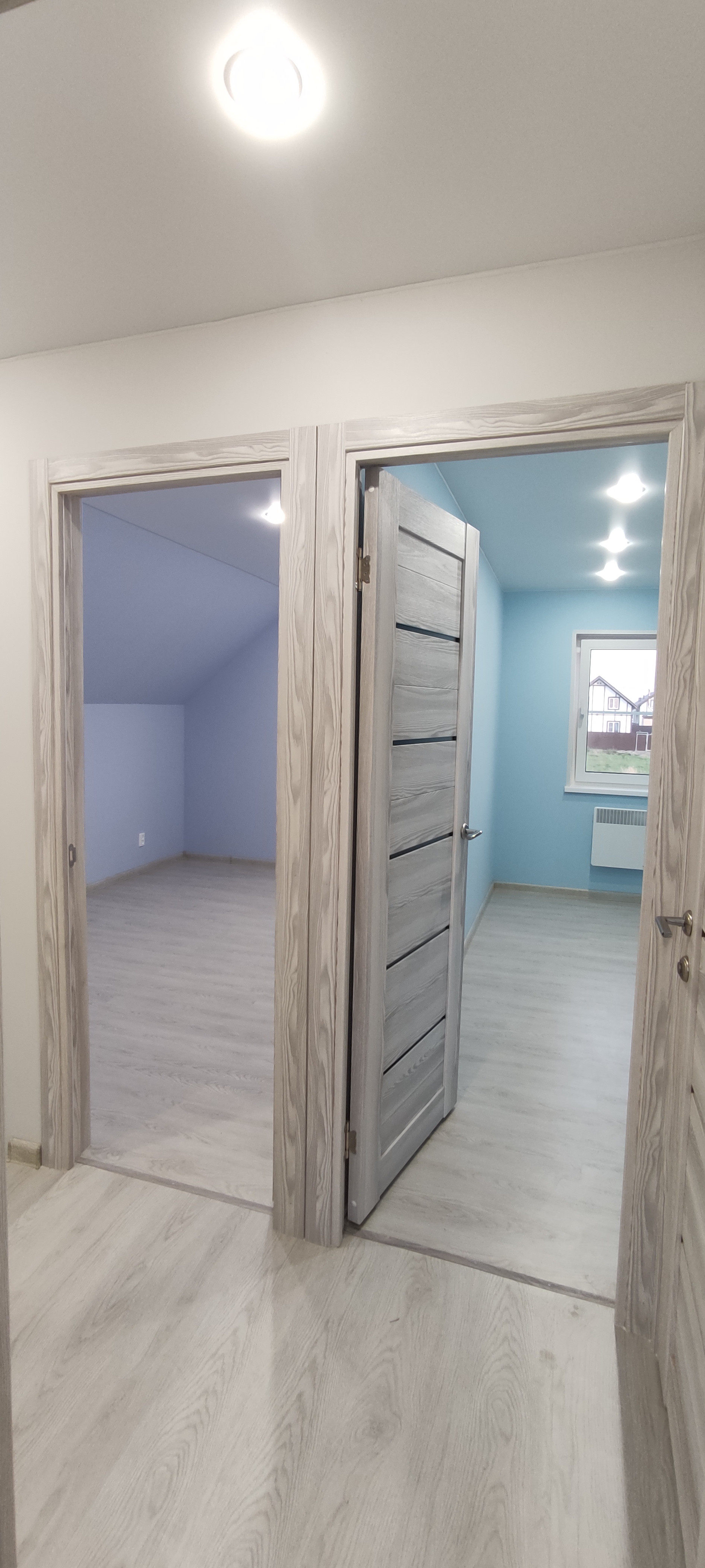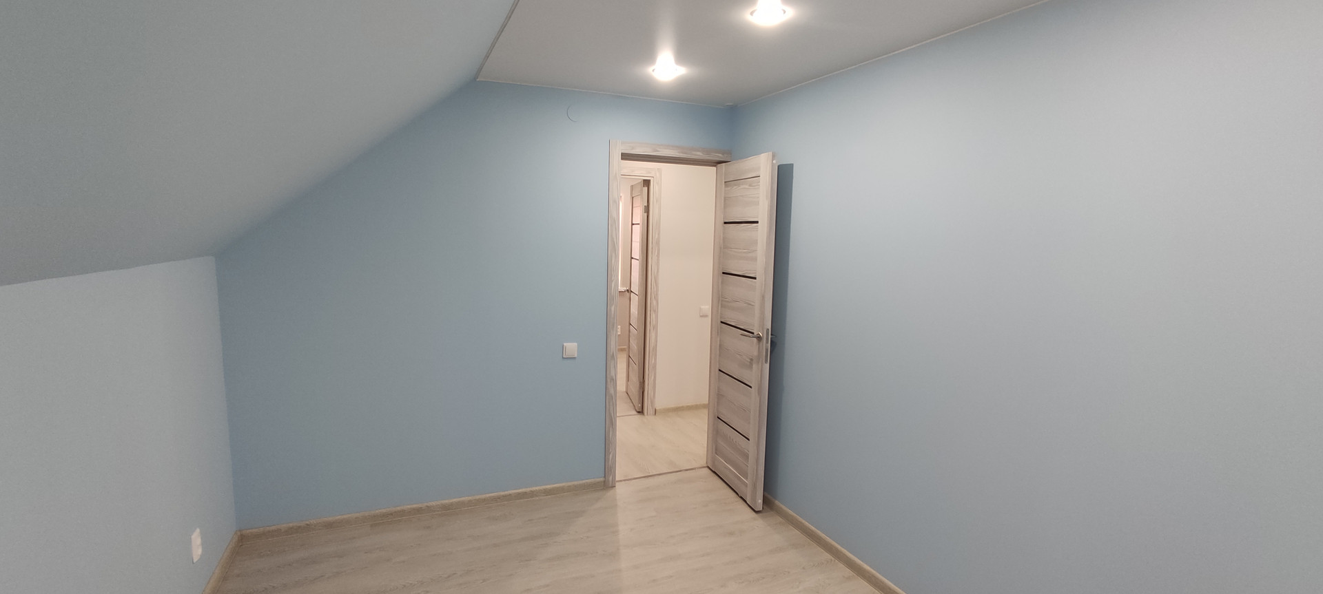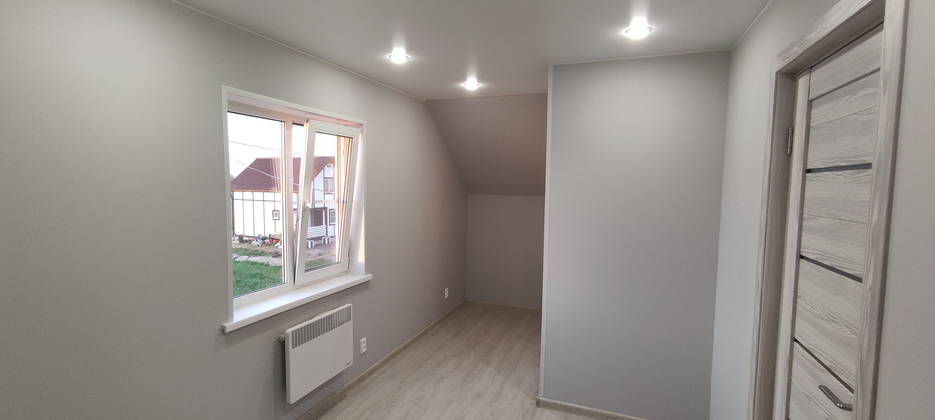 - Внутренняя отделка: крашеные стены по гипсокартону (Можно мыть, легко перекрасить, можно поклеить обои), натяжные потолки, ламинат, керамогранит;