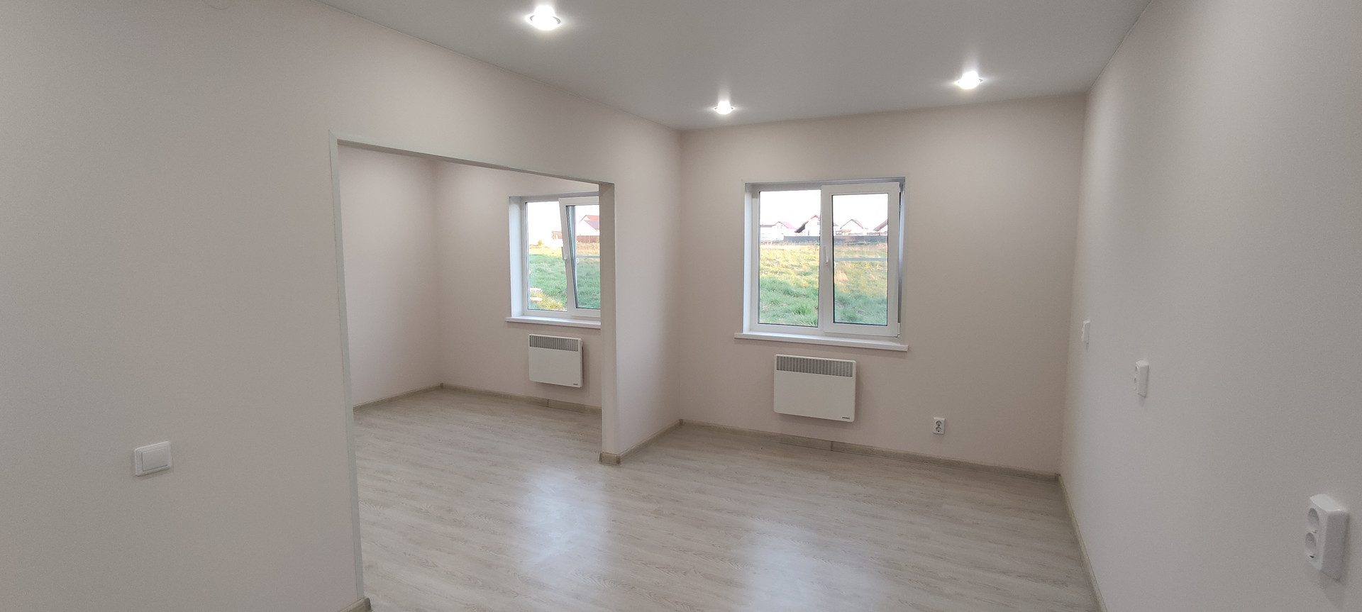 - Отопление дома: электрический теплый пол по всему первому этажу, экономичные конвектора (Возможно подключение «GSМ» модуля/установка «умных» розеток для удаленного управления отоплением дома);