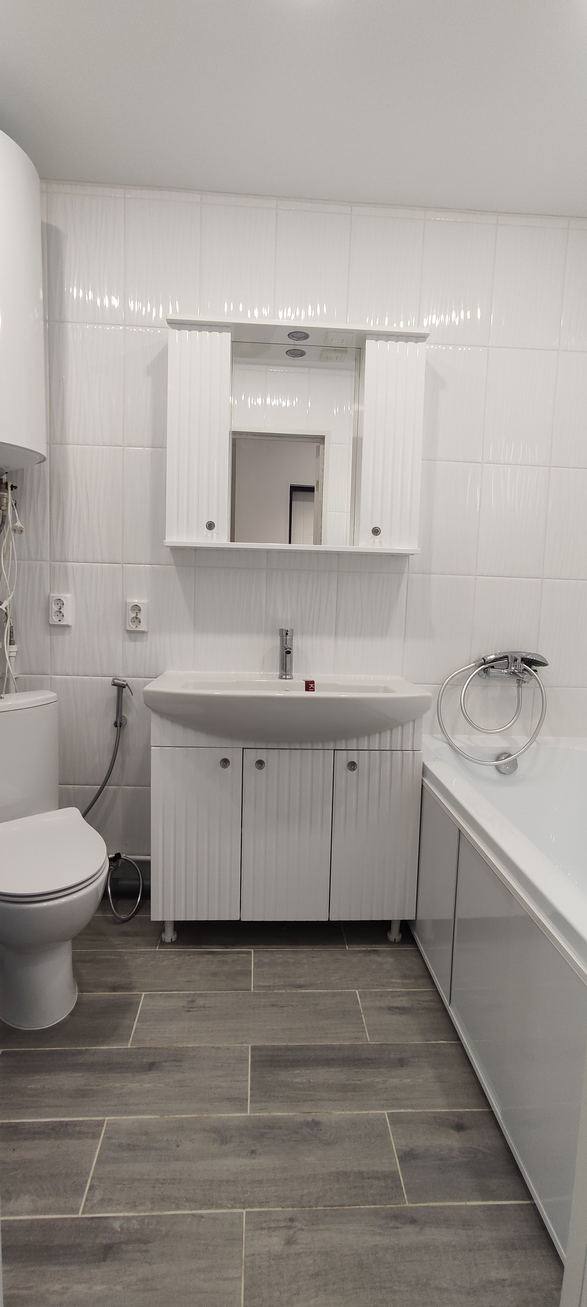 - В санузле первого этажа разведена сантехника «под ключ» (установлены - ванна, унитаз, тумба с раковиной, зеркало, водонагреватель), сварены качественные полипропиленовые трубы, есть теплый пол. В санузле второго этажа разведена сантехника «под ключ» (установлены - унитаз, тумба с раковиной, зеркало);