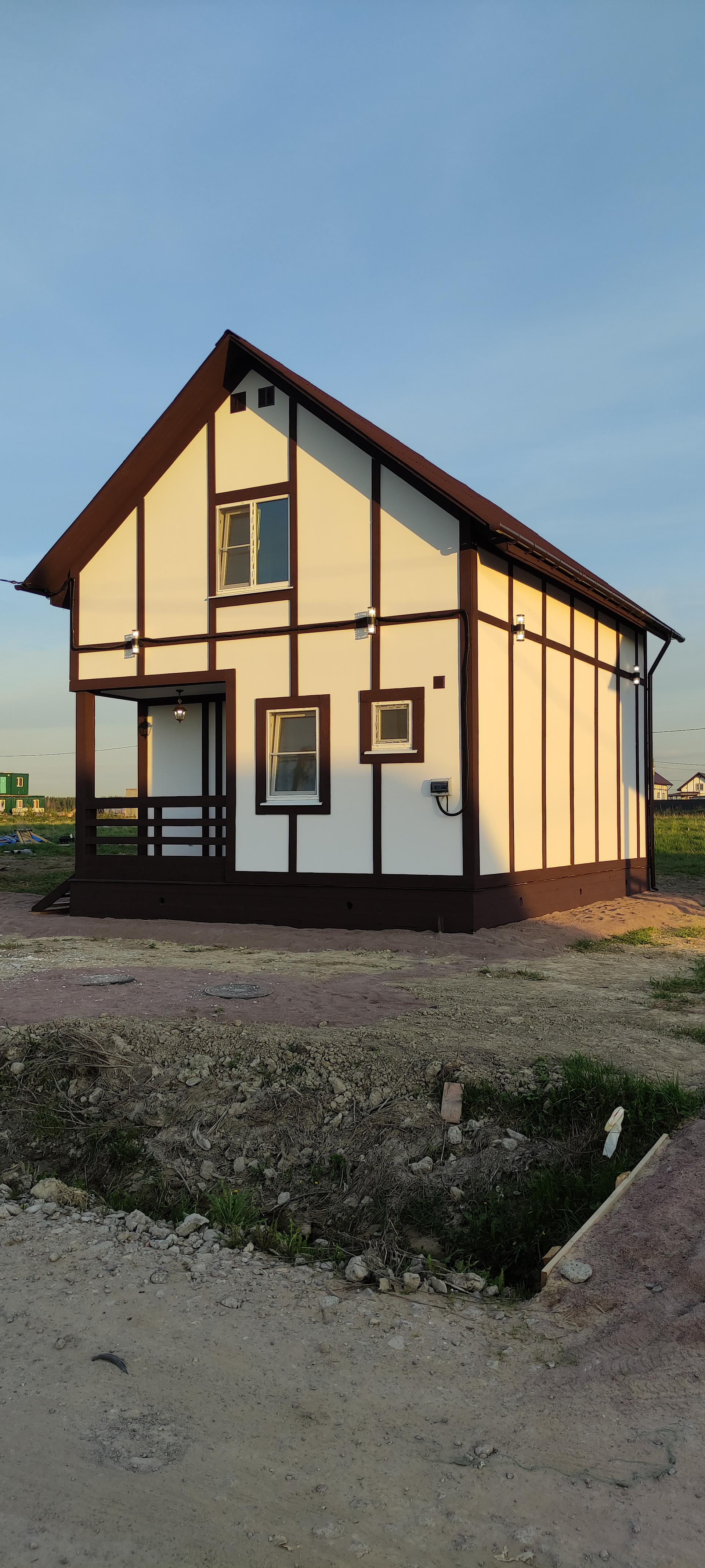 - Фасад дома изготовлен в стиле «фахверк»;