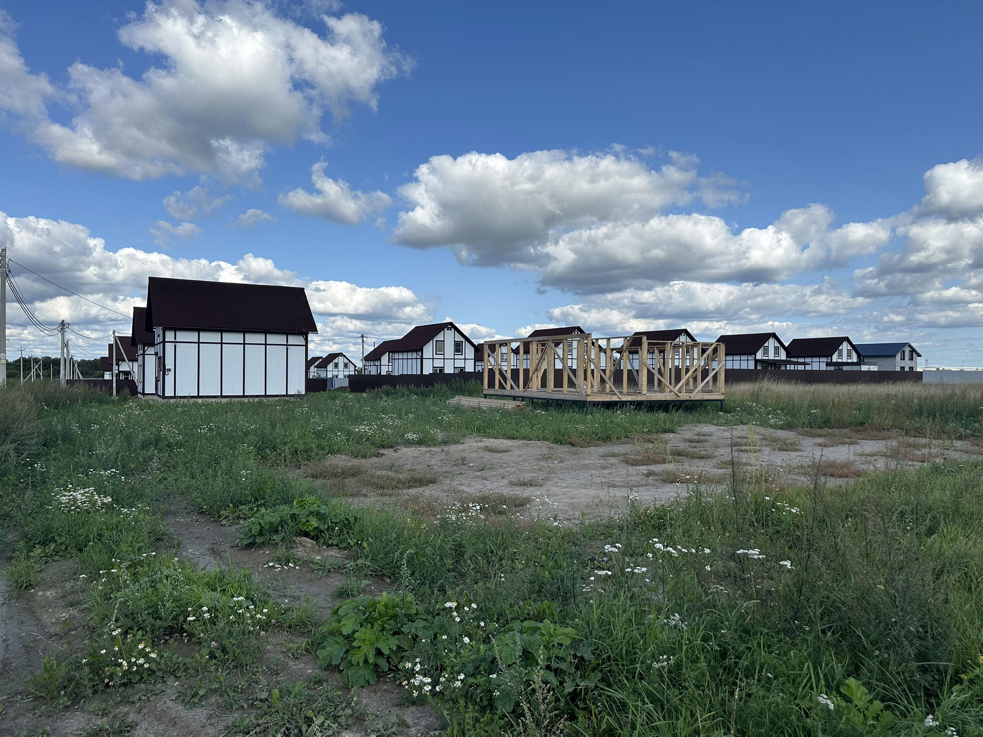 Продам ровный, сухой участок 10 соток. Подключено 15квт электричество, проведены земельные работы, планирование, отсыпка песчаной подушки 17х8м, под плиту через геотекстиль 30см, начато строительство каркасной бани 8х6,5м.