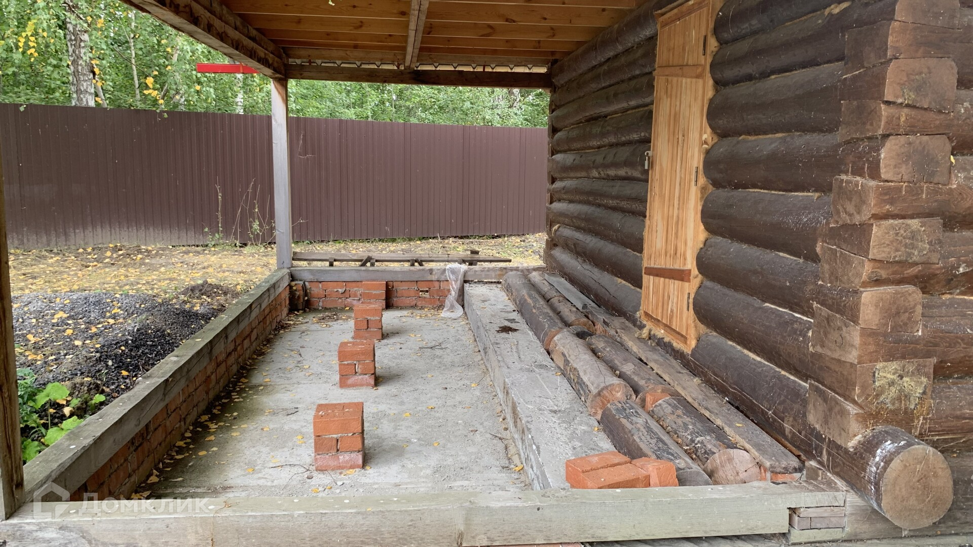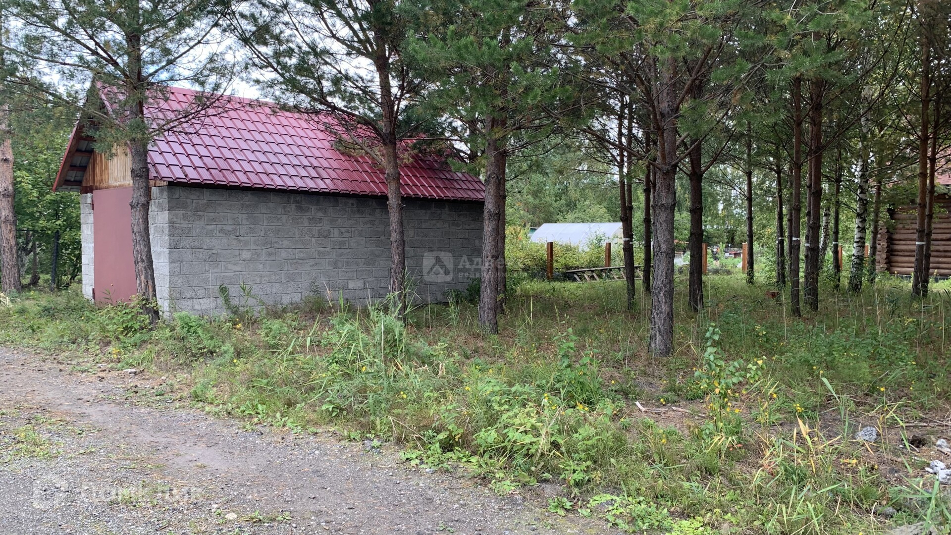 Также на участке расположена бревенчатая баня с верандой и капитальный гараж из керамзитоблоков.