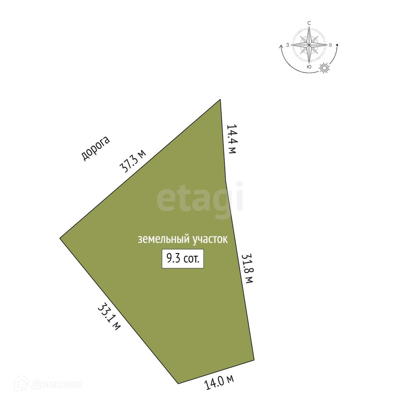 Площадь участка 9.3 сот.